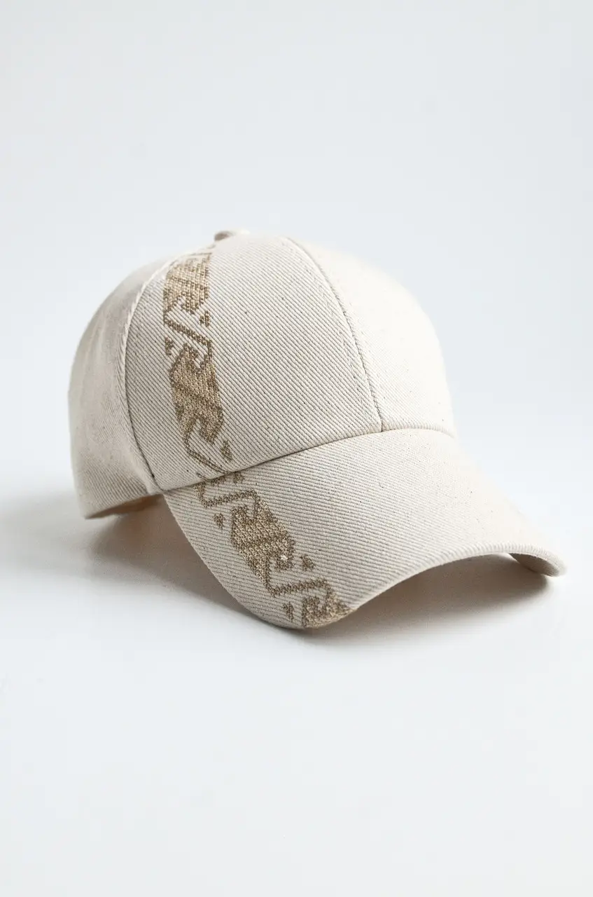 Кепка класичної форми виконана із щільної тканини, прикрашена машинною вишивкою.