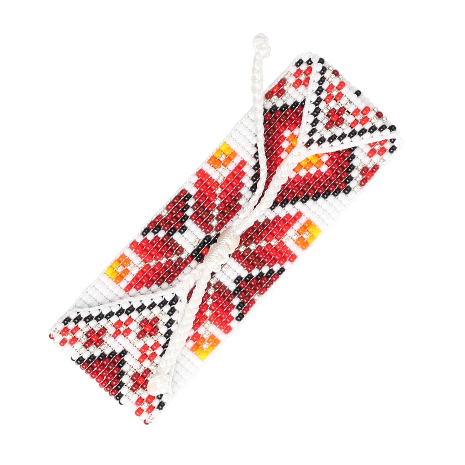 Браслет з бісеру оранжево-червоний “Геометрія”