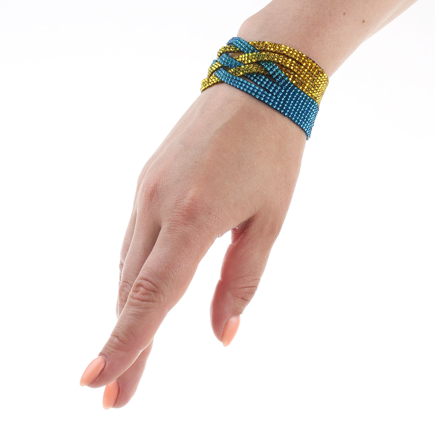 Будьте першим, хто залишив відгук на “Браслет з бісеру синьо-жовтий плетений”