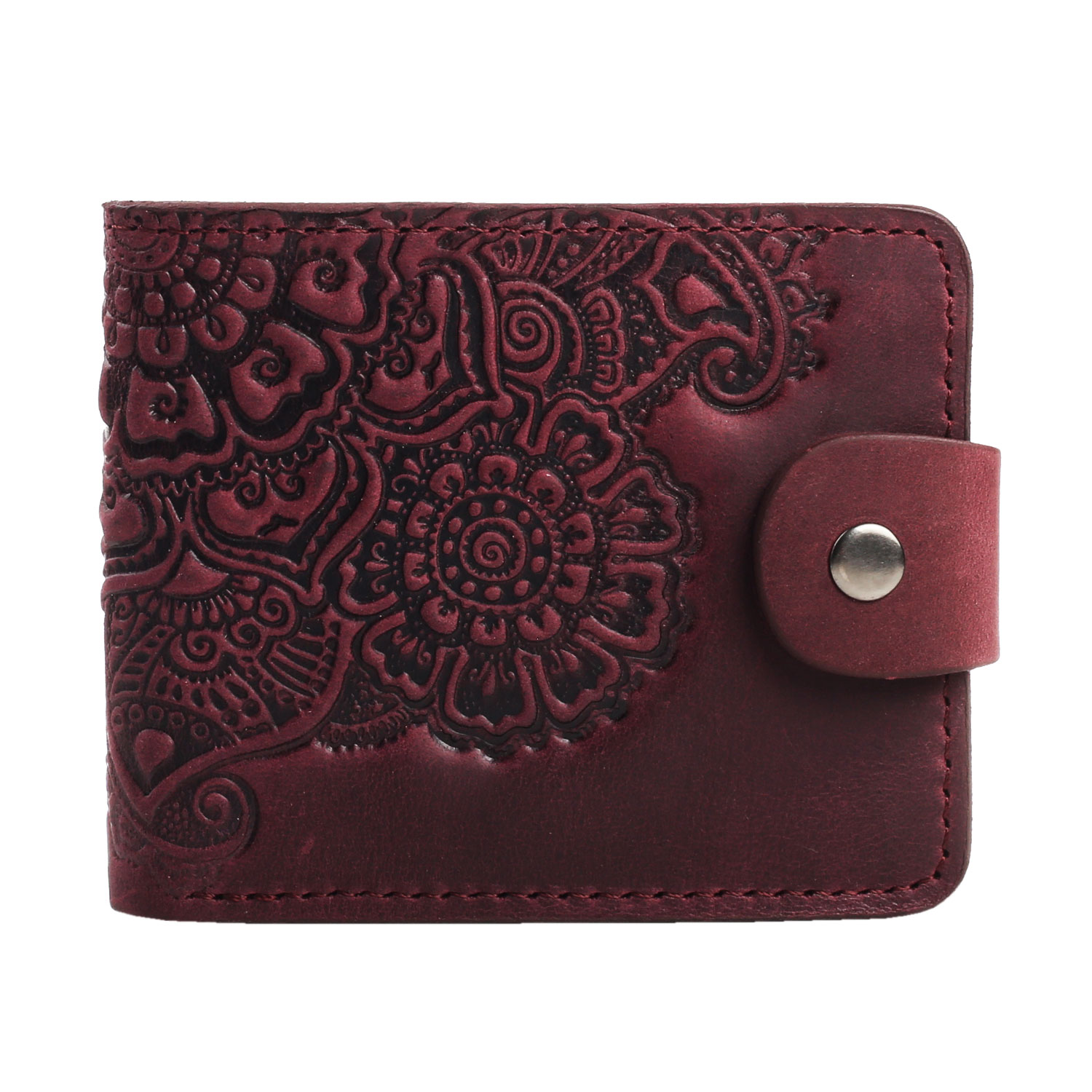 Гаманець бордовий з натуральної шкіри , з  орнаментом .