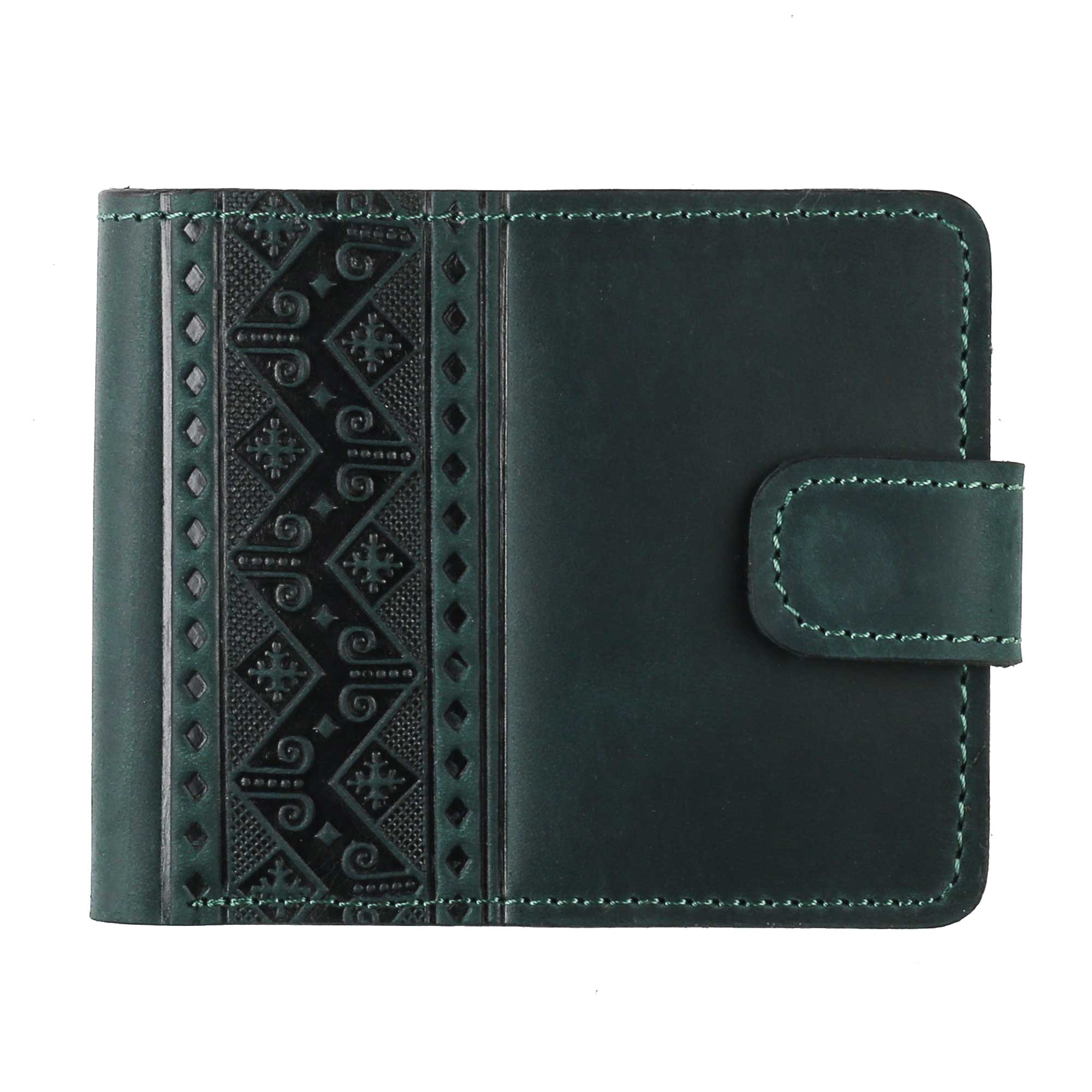Гаманець зелений з натуральної шкіри , з  орнаментом .