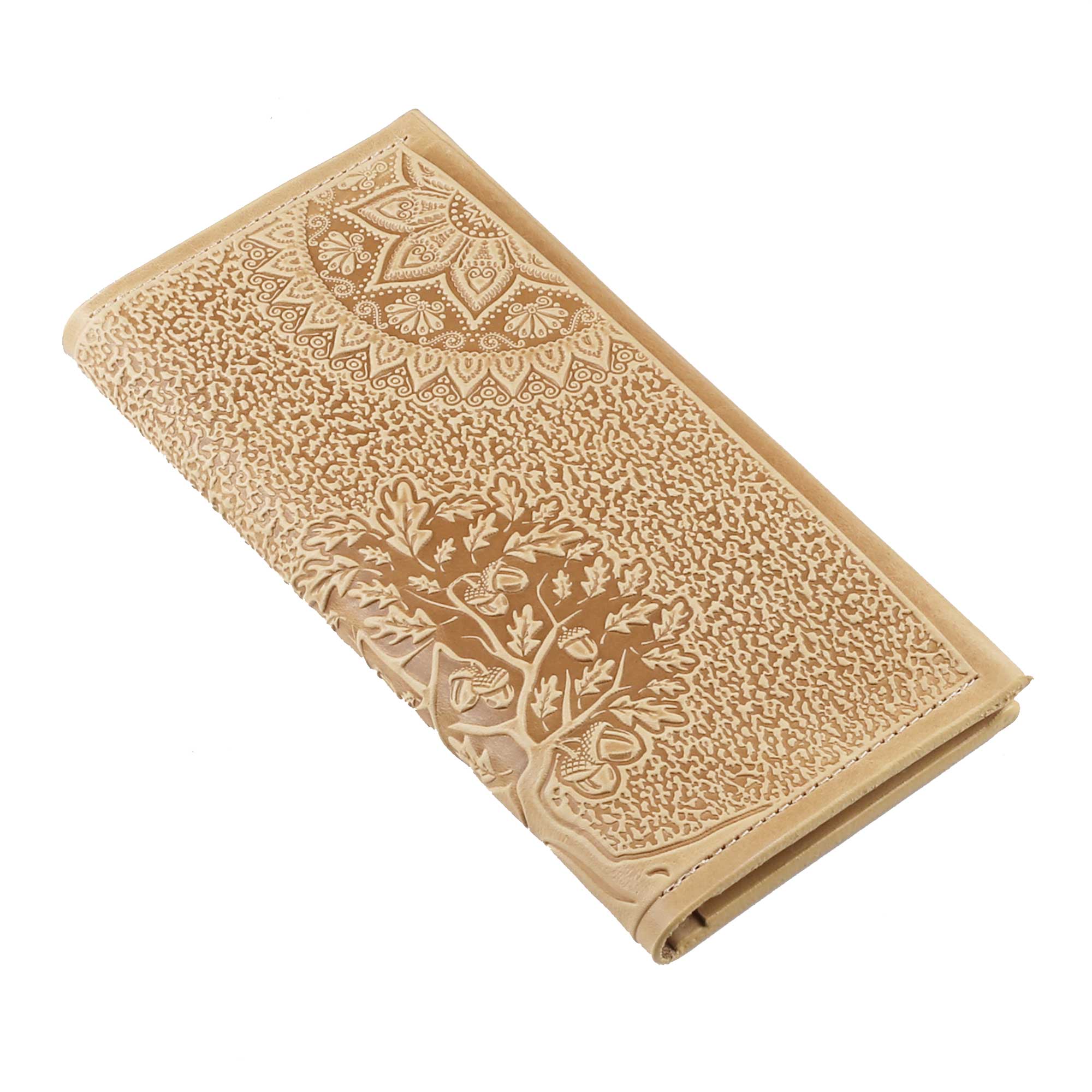 Шкіряний гаманець ручної роботи, довгий, з тисненням