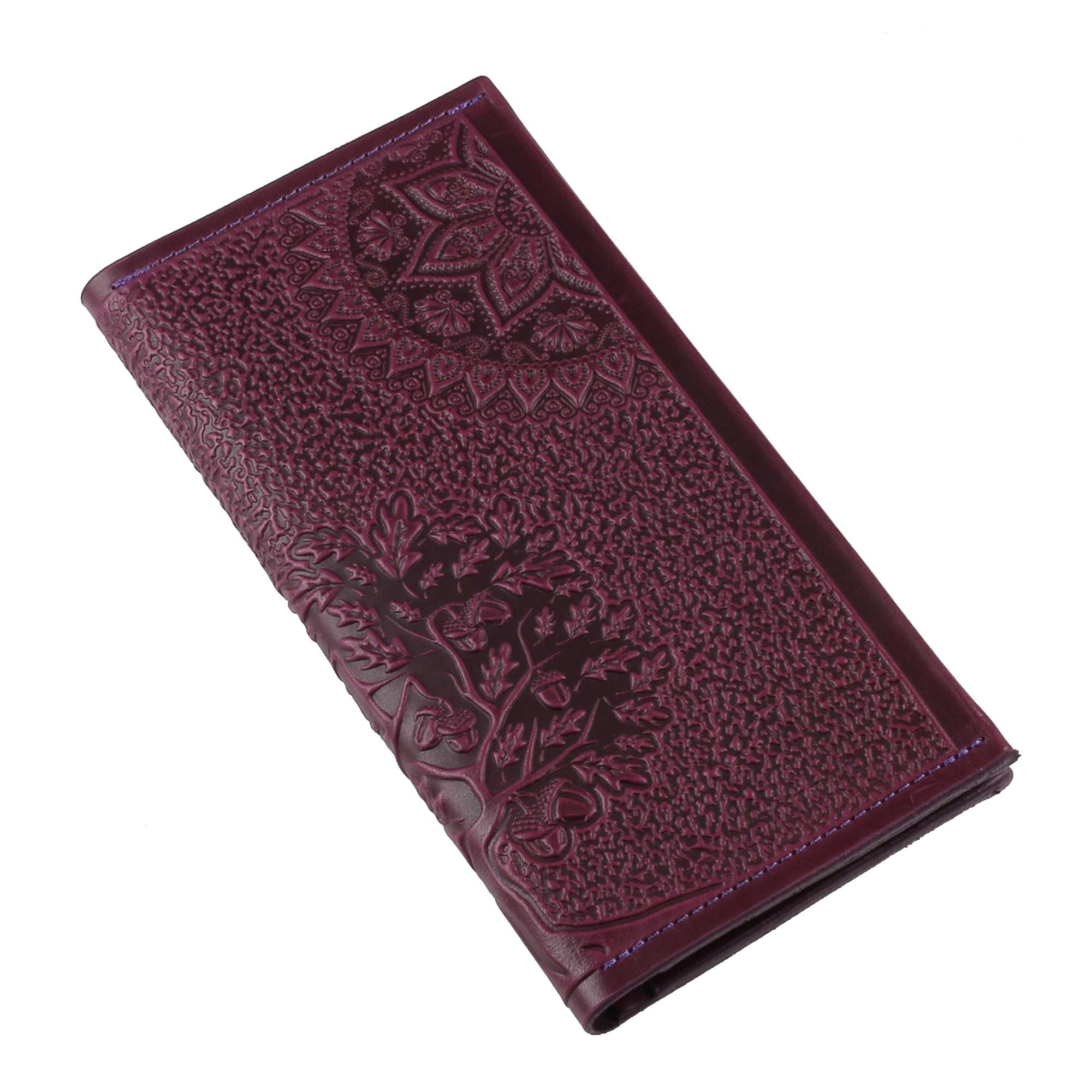 Шкіряний гаманець ручної роботи, довгий, з тисненням