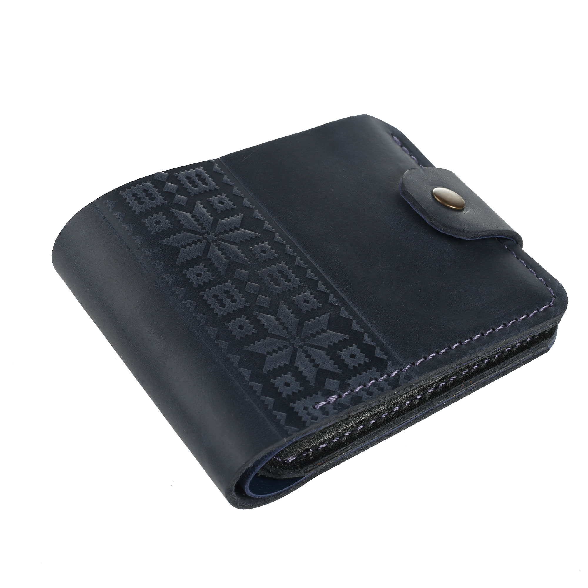 Гаманець з натуральної шкіри , з  орнаментом Вишиванка .