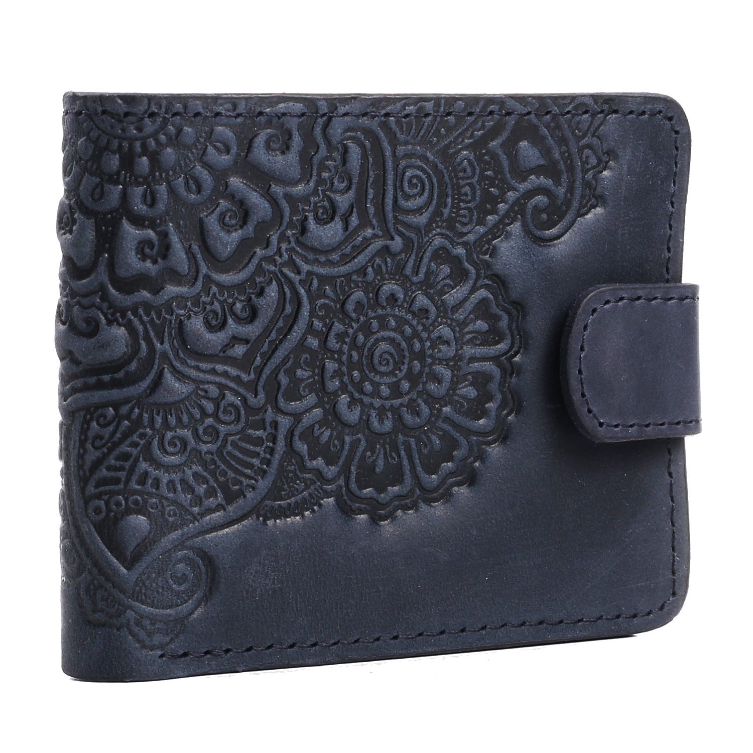Гаманець синій з натуральної шкіри , з орнаментом .