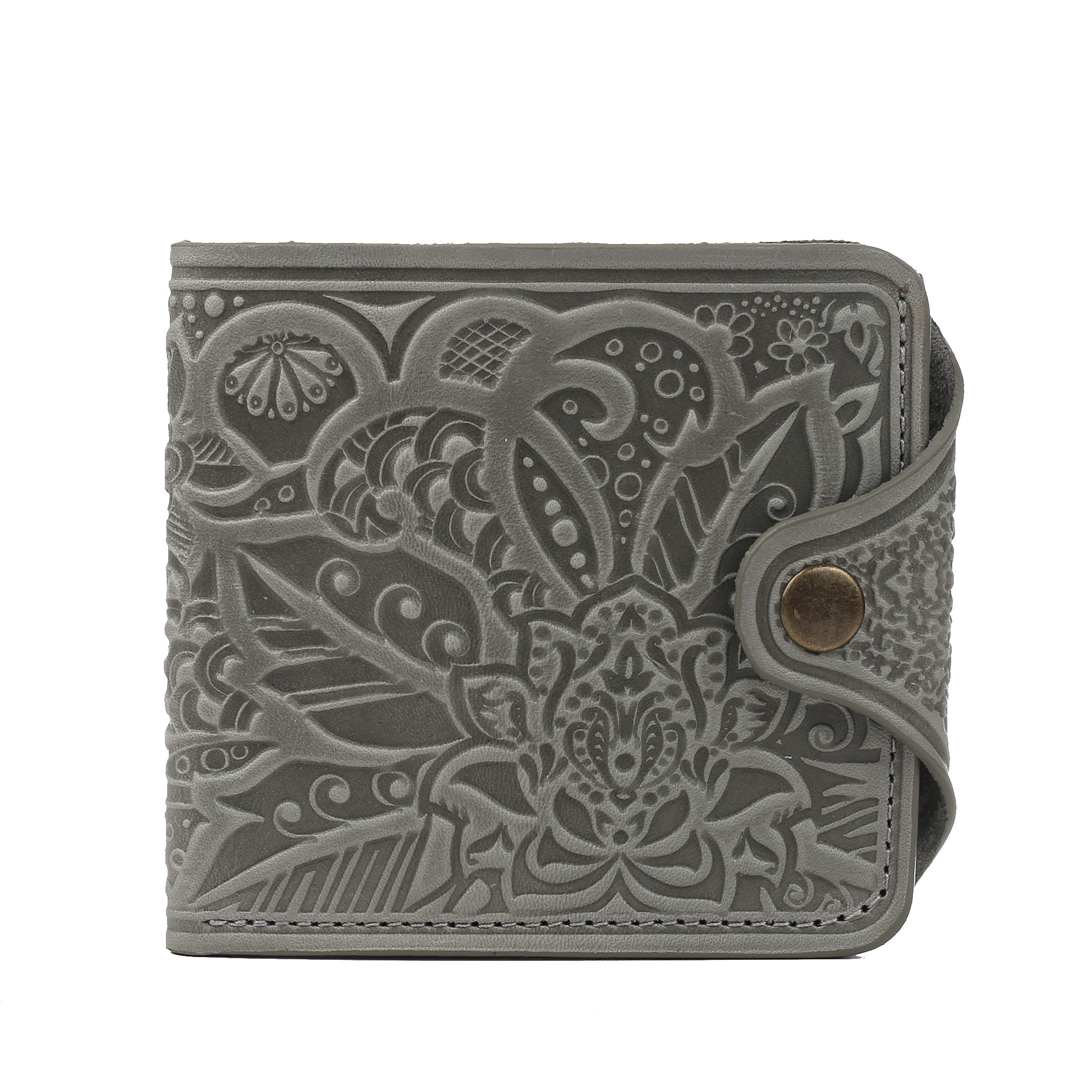 Гаманець з натуральної шкіри , з  орнаментом Квіти .