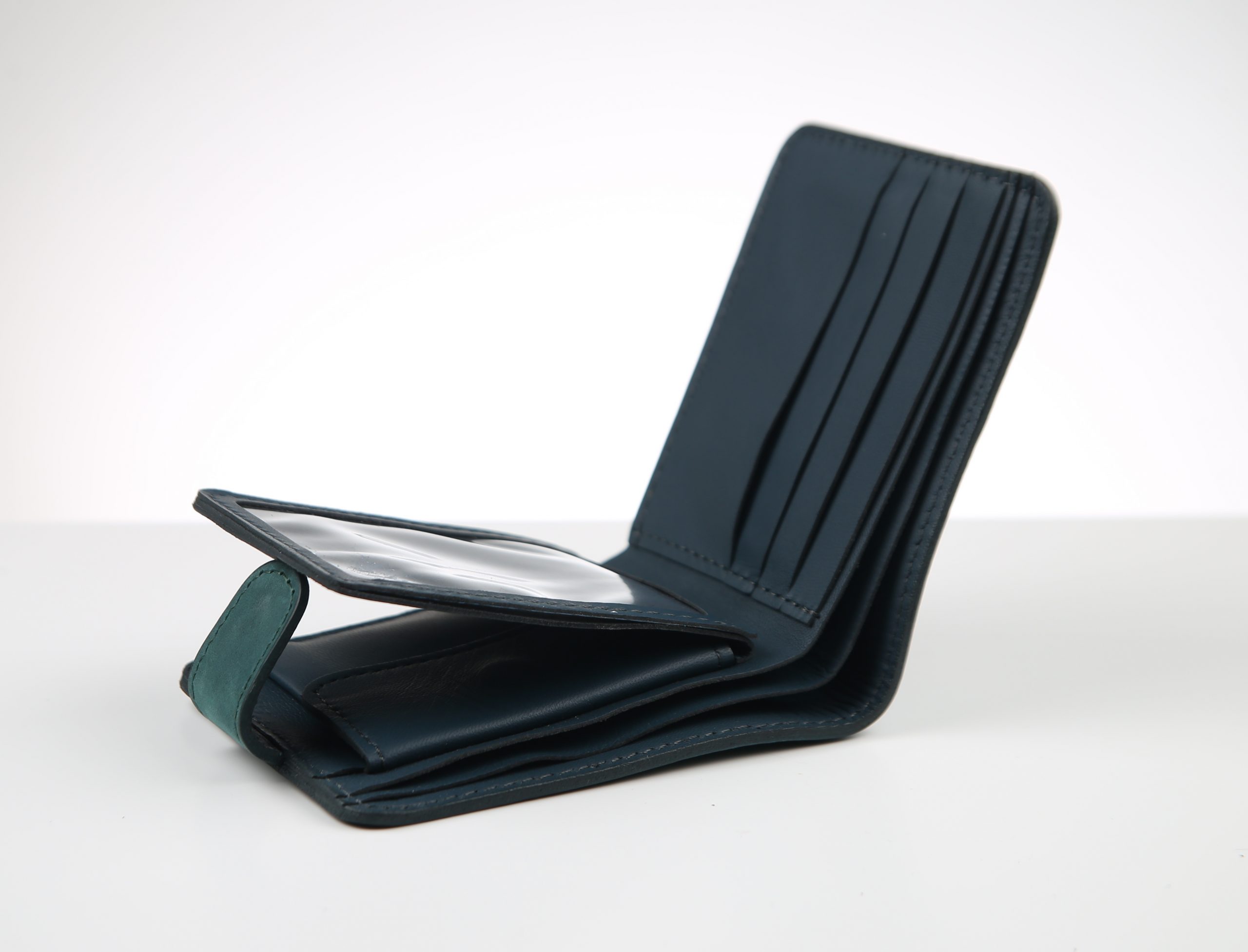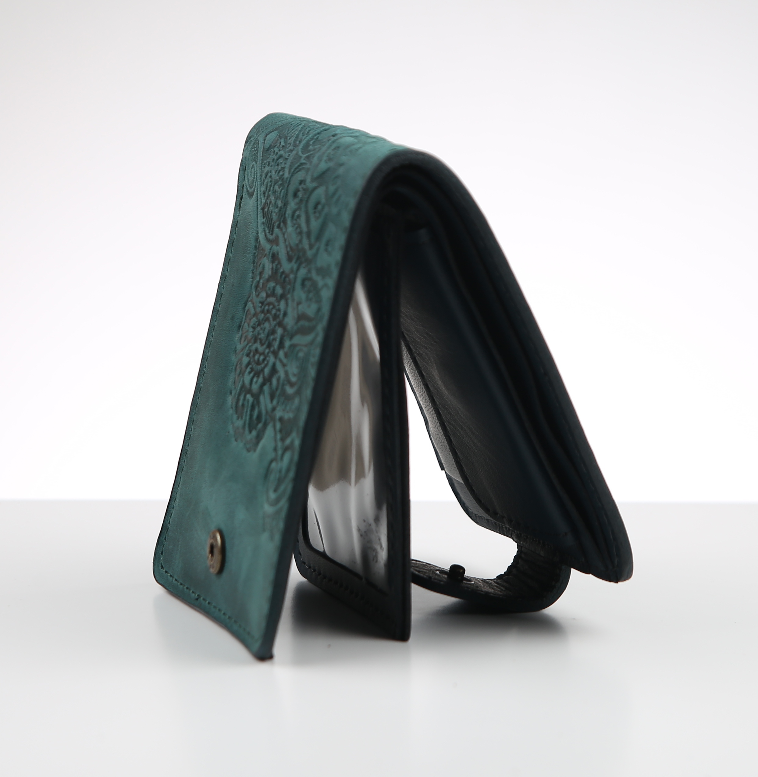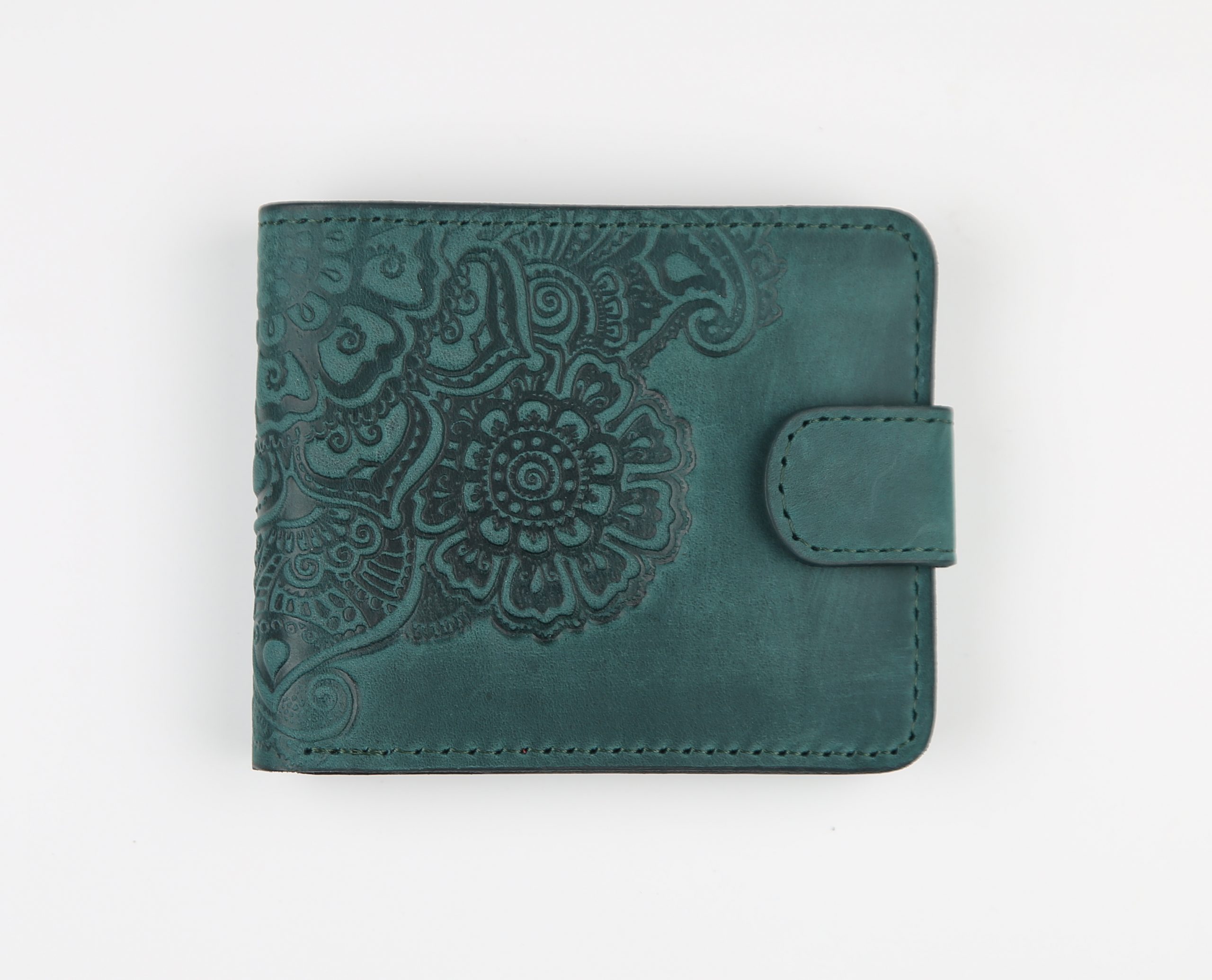 Гаманець темно-зелений з натуральної шкіри , з орнаментом .