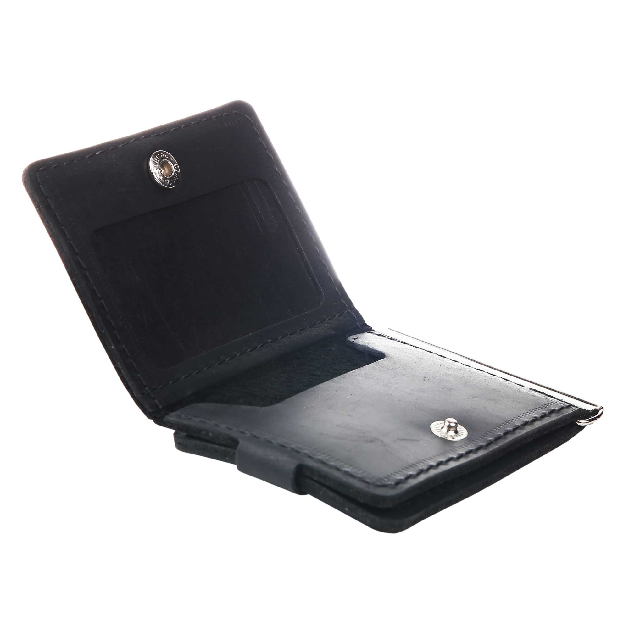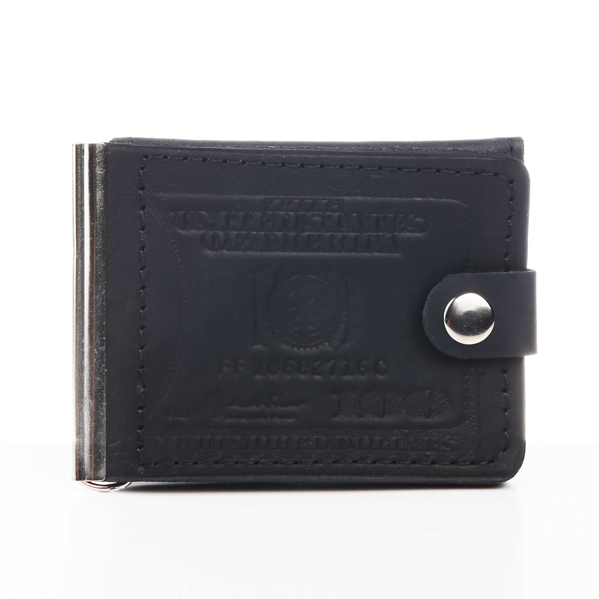 Гаманець-трансформер з натуральної шкіри, з тисненням, чорний на кнопці.