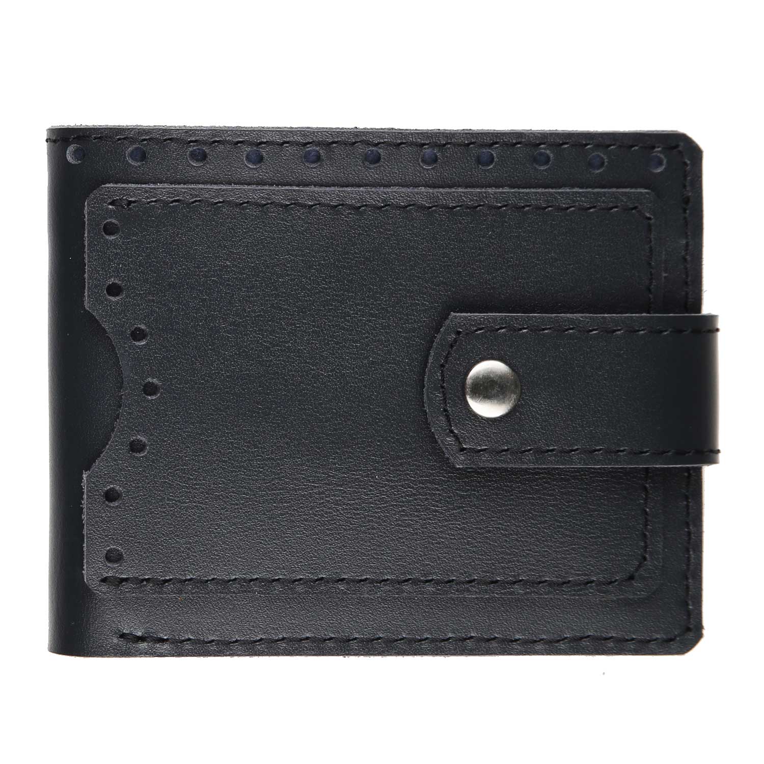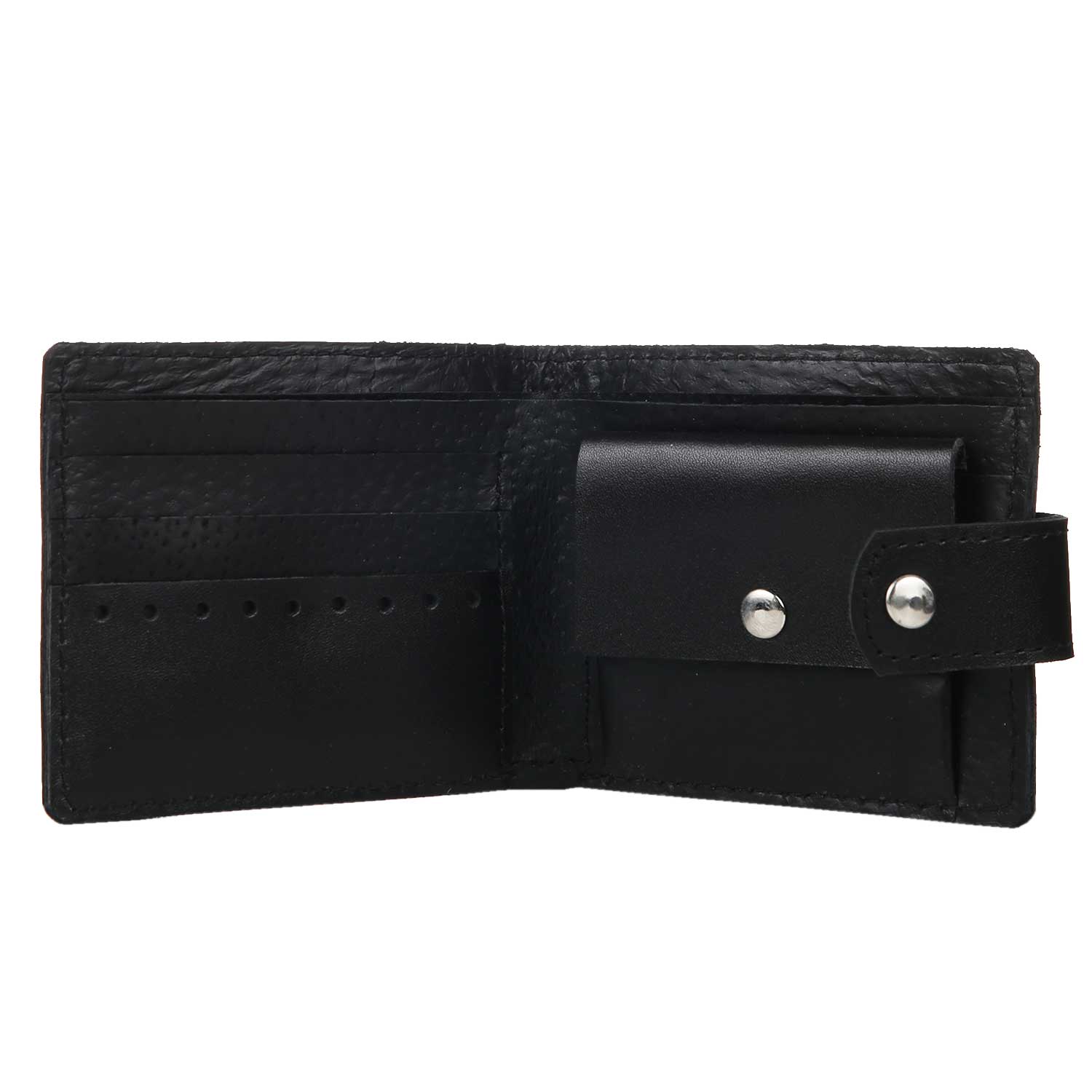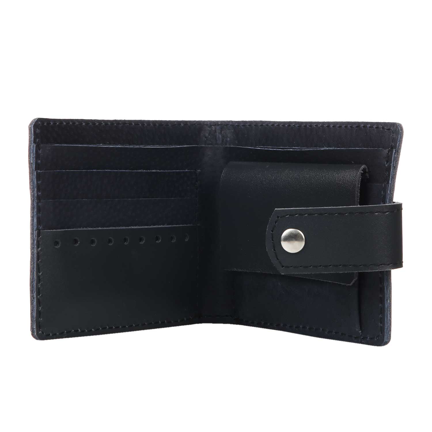Чорний гаманець ручної роботи з  двома застібками та кишеньками для карточок