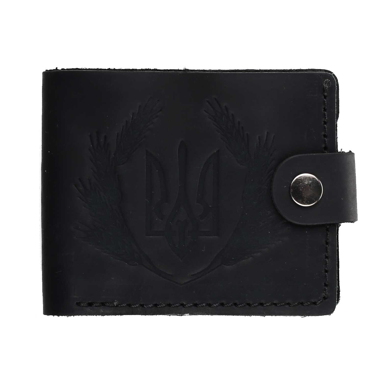 Гаманець чорний з натуральної шкіри , з орнаментом .