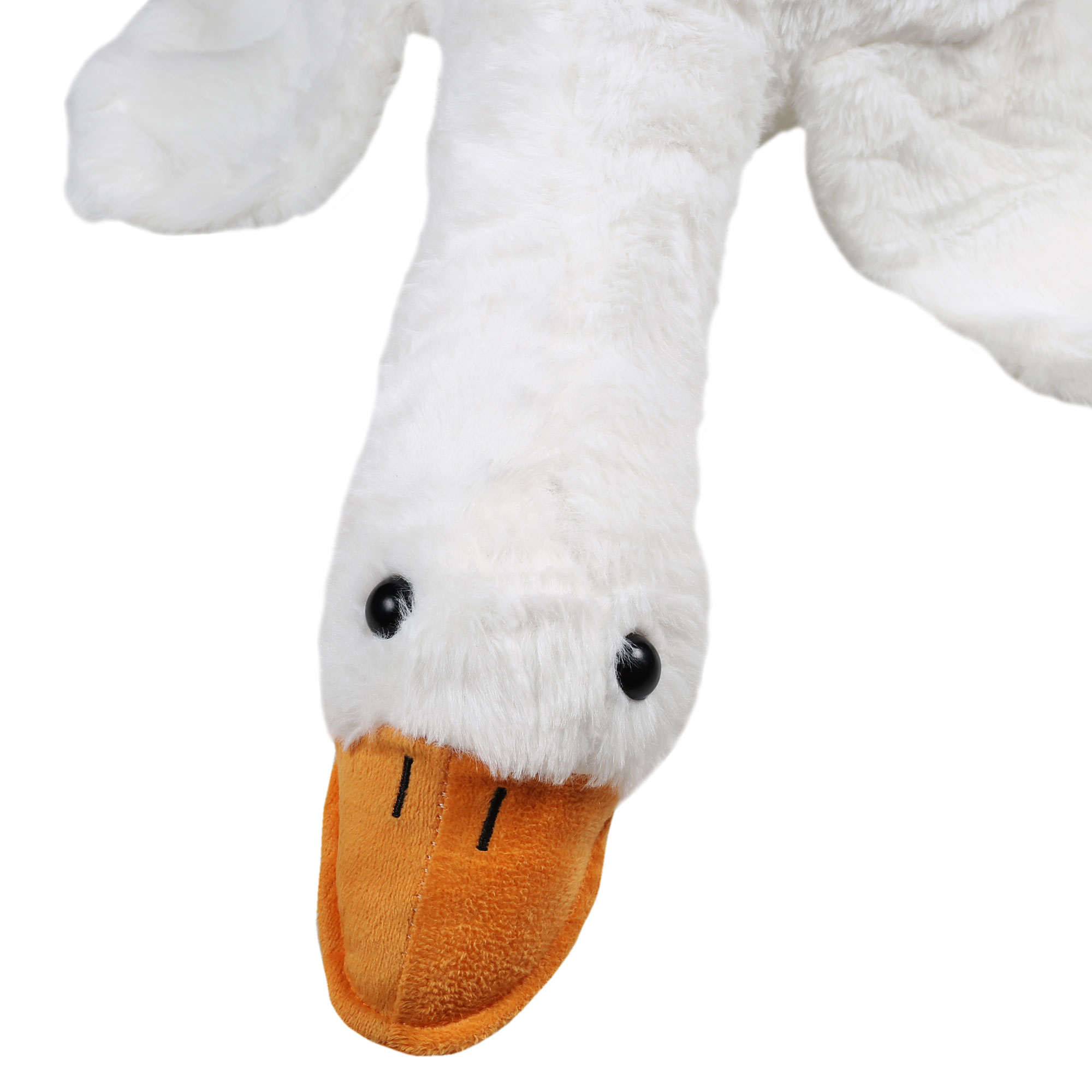 Іграшка-гусь м’ягка та приємна на дотик яка підійде, як дорослим так і дітям. Зручна для обіймів, ігор, можна використовувати як подушку , брати з собою в машину. Внизу має застібку туди дітки можуть заховати всілякі цікавинки. Також можна вийняти весь наповнювач, випрати іграшку і знову наповнити матеріалом. Наповнювач гіпоалергенний.