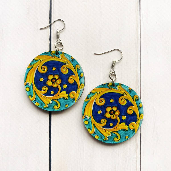 Дерев’яні сережки з розписом, ручна робота та якісна фурнітура