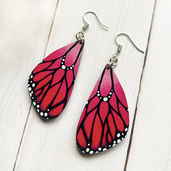 Дерев’яні сережки з розписом, ручна робота та якісна фурнітура