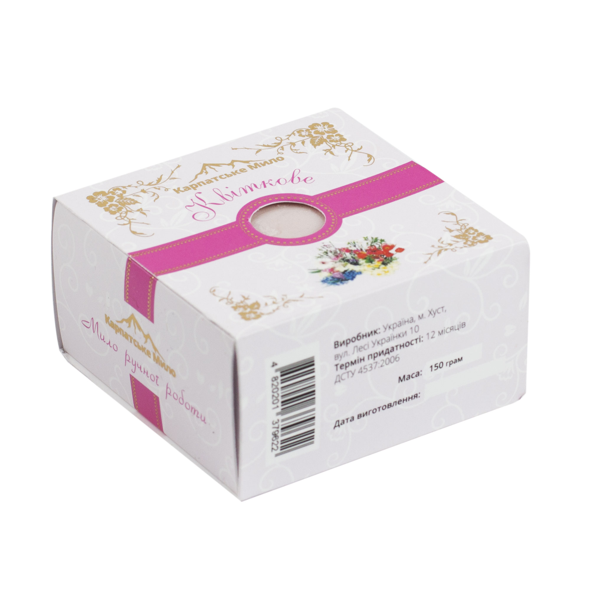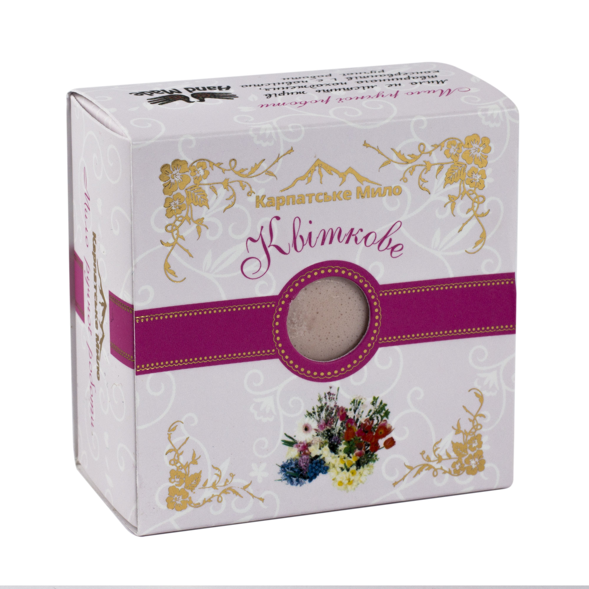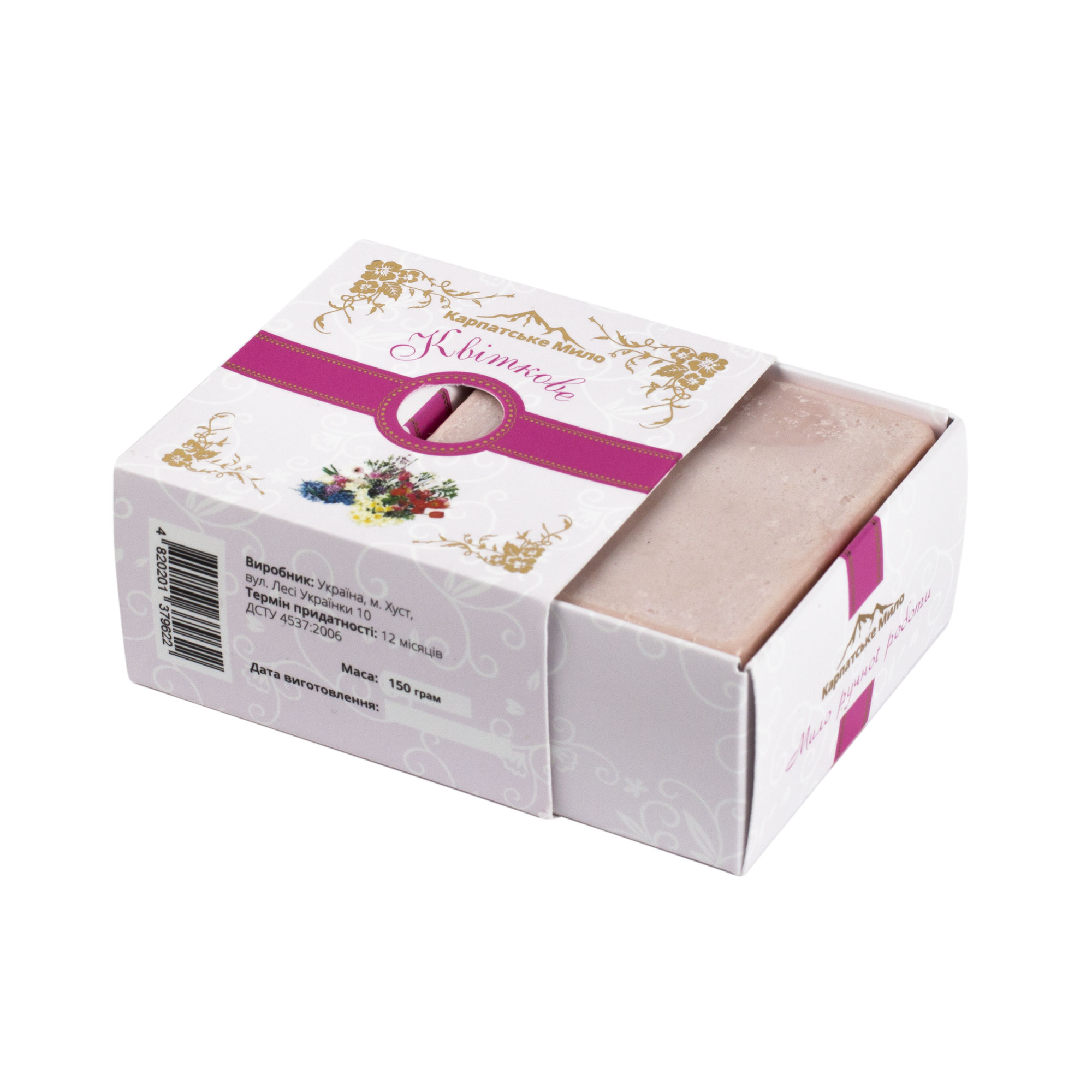 Мило ” Квіткове” має приємний та насичений аромат квітів. Підходить для всіх типів шкіри, розслаблює та знімає втому. Чудовий косметичний продукт, який тонізує шкіру, робить її м’якою та шовковистою.