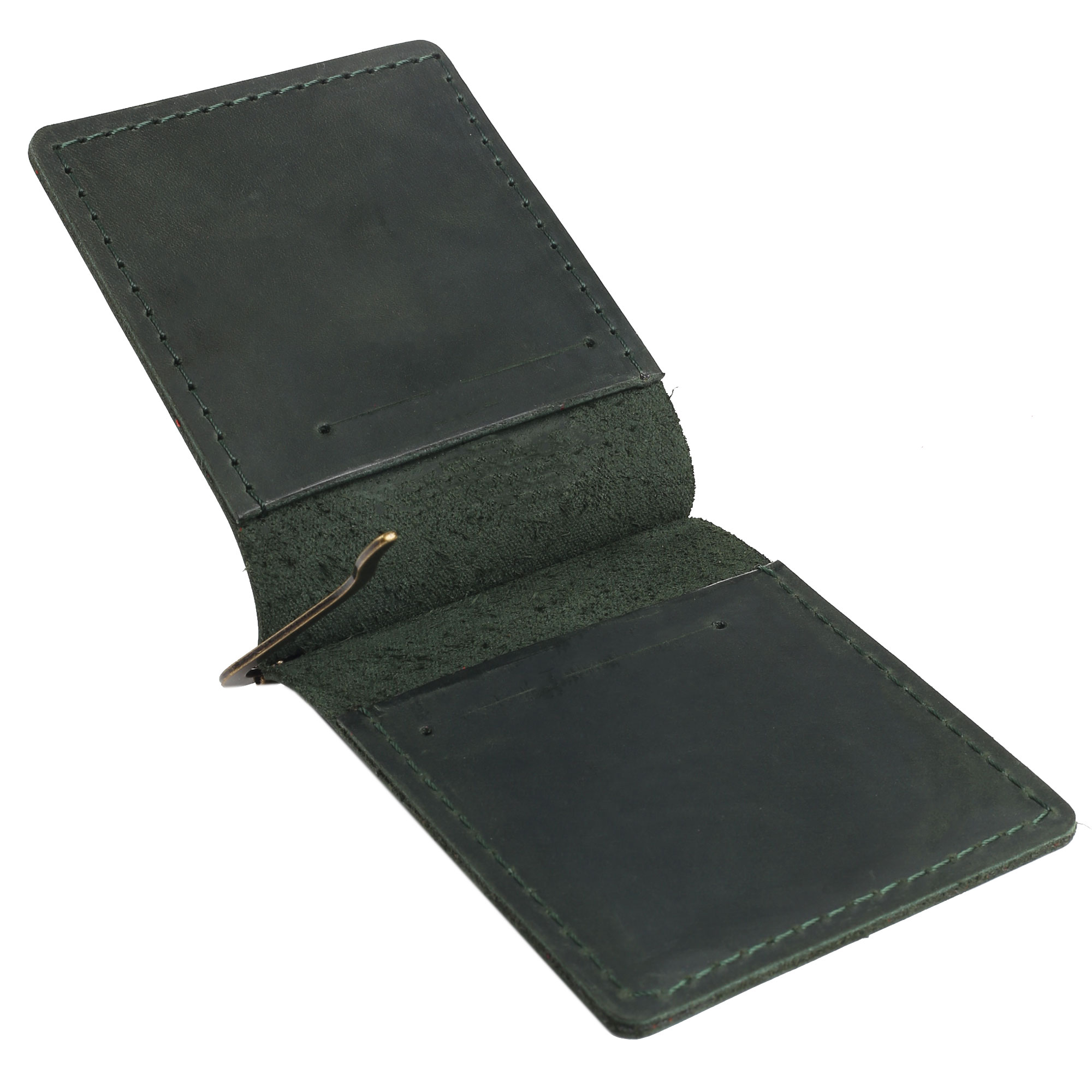 Затискач для купюр з пружинним тримачем і двома відділами для карт з якісної  крейзі хорс  натуральної шкіри з тисненням