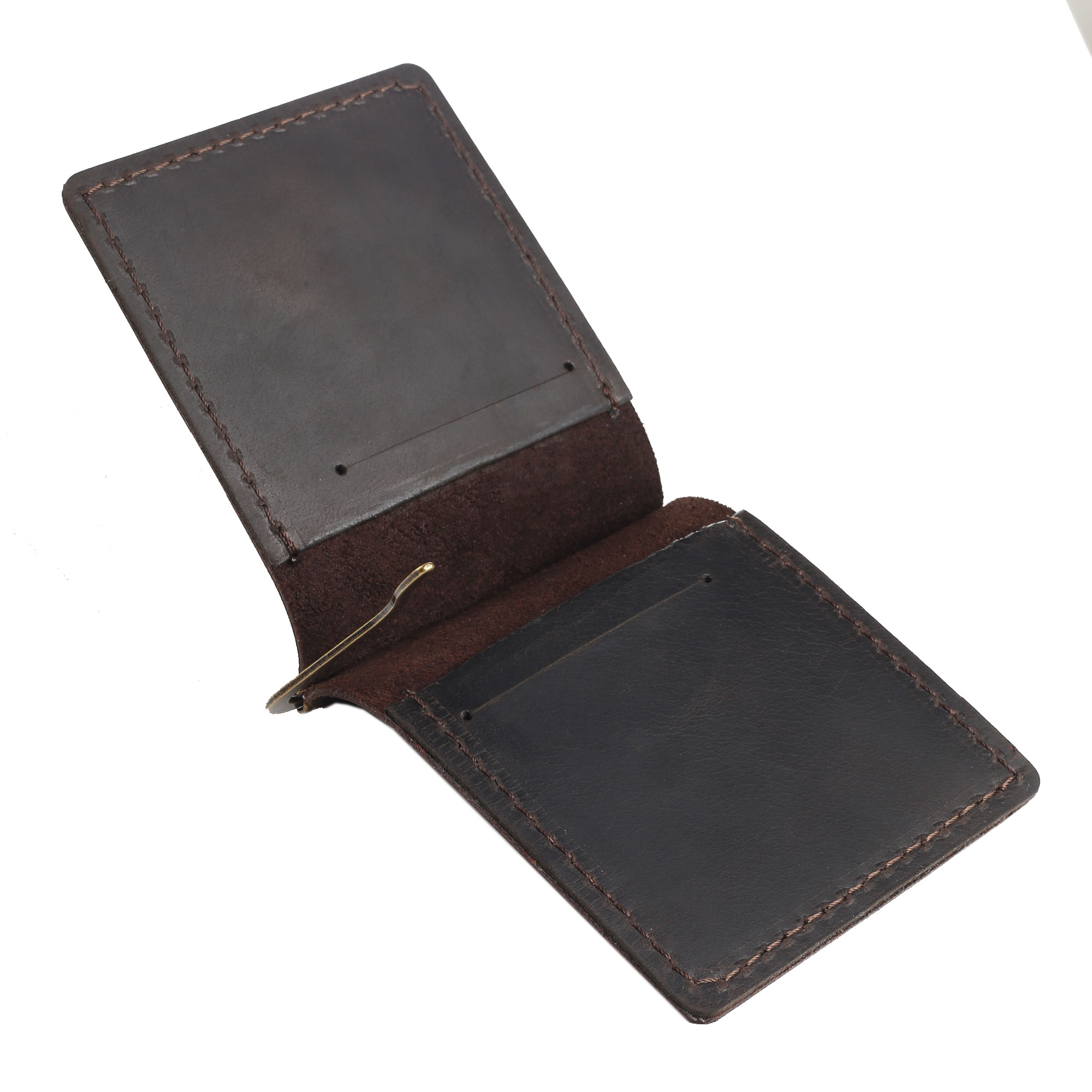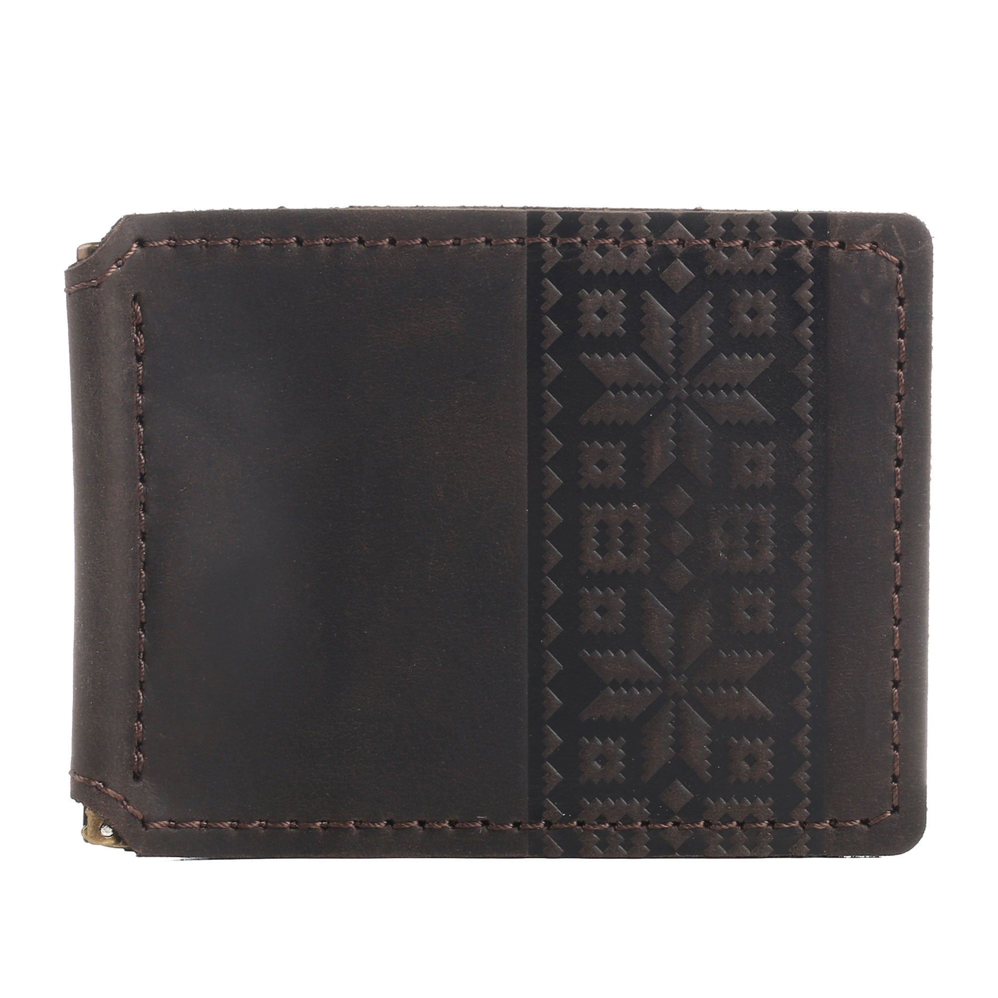 Затискач для купюр з пружинним тримачем і двома відділами для карт з якісної  крейзі хорс  натуральної шкіри з тисненням