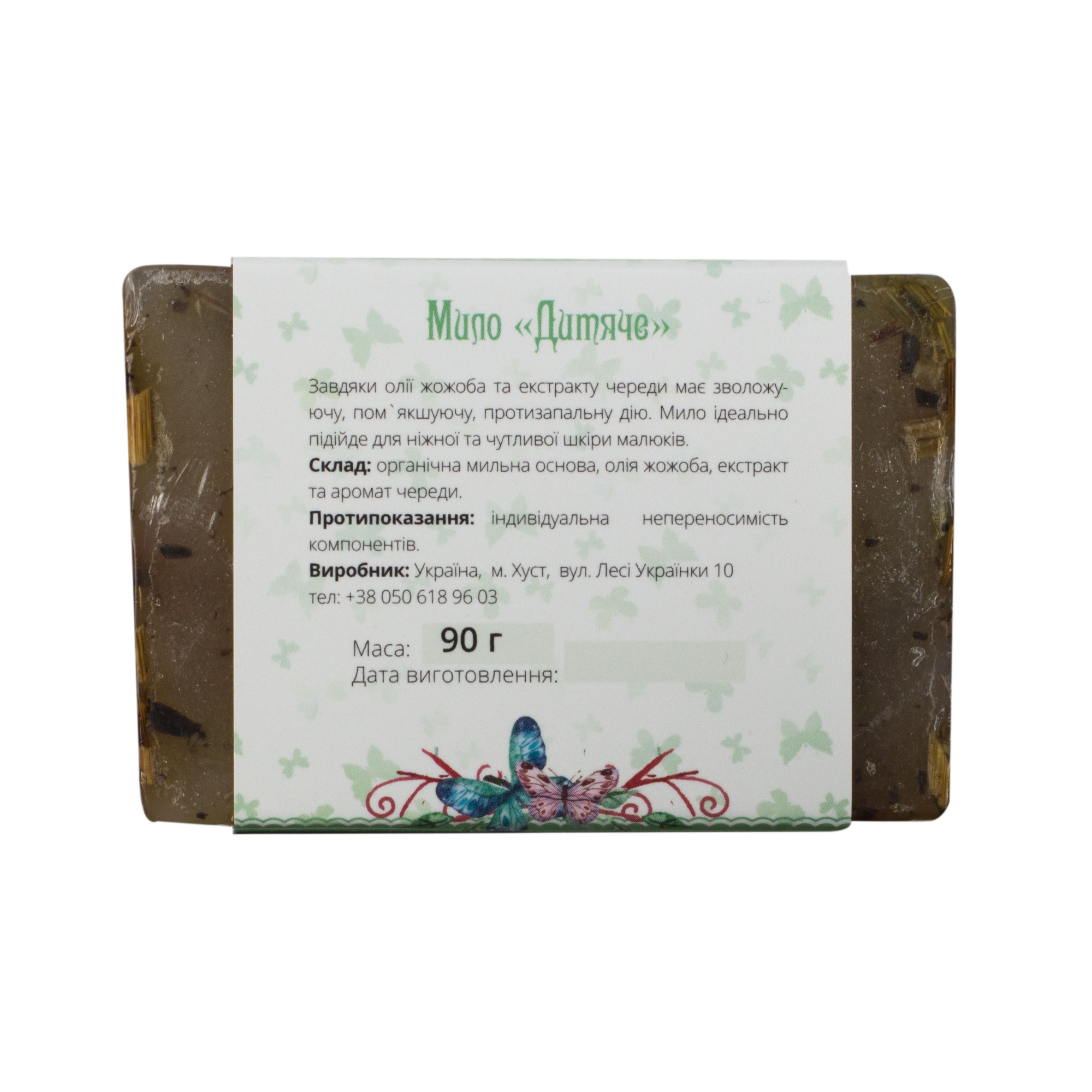 Завдяки олії жожоба та екстракту череди має зволожуючу , пом’якшуючу , протизапальну дію. Мило ідеально підійде для ніжної та чутливої шкіри малюків.