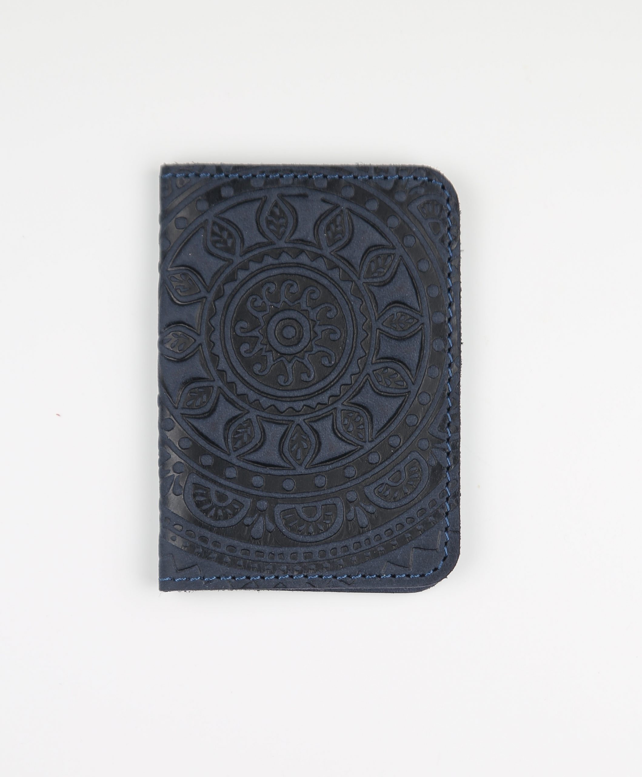 Картхордер шкіряний , темно-синій , на 2 картки.