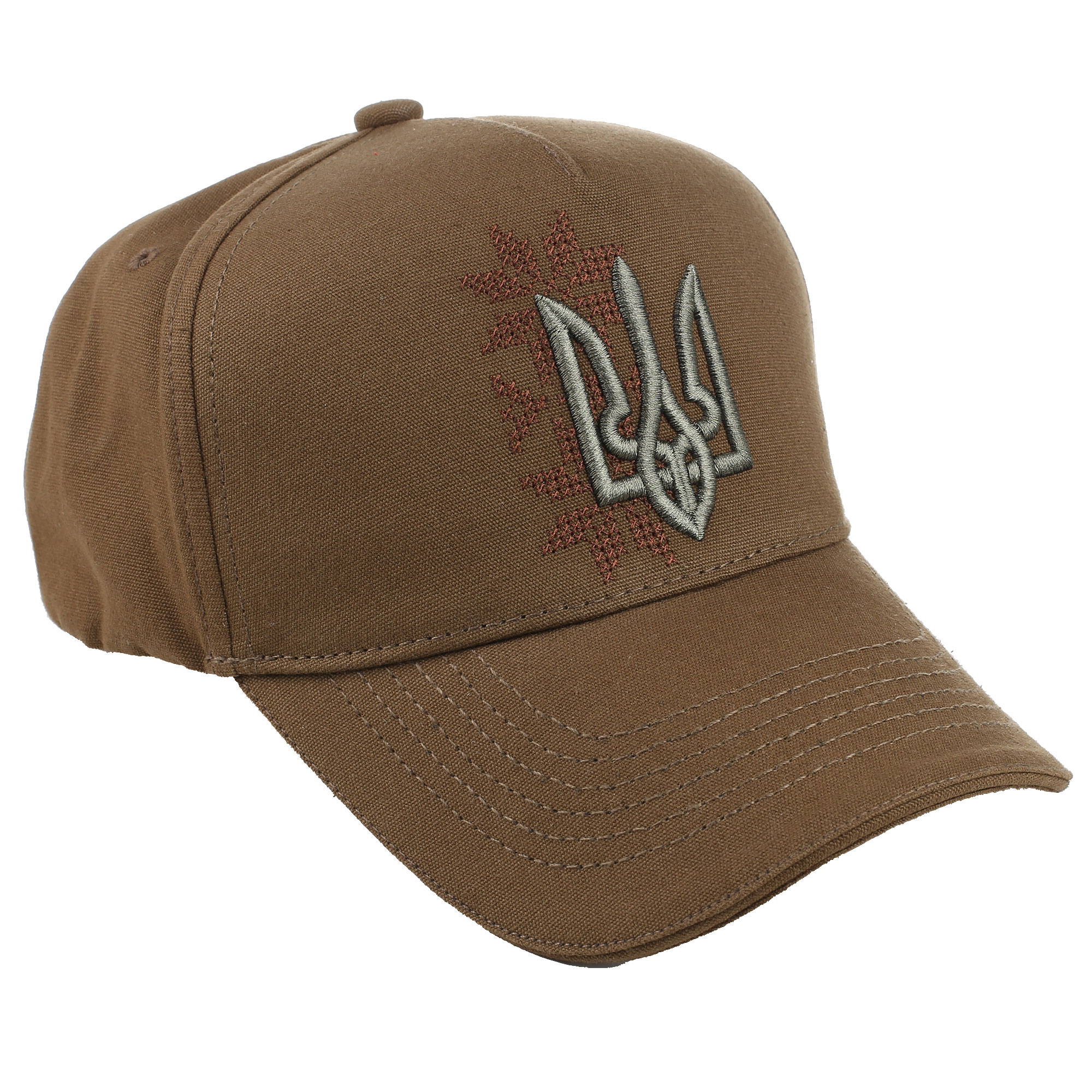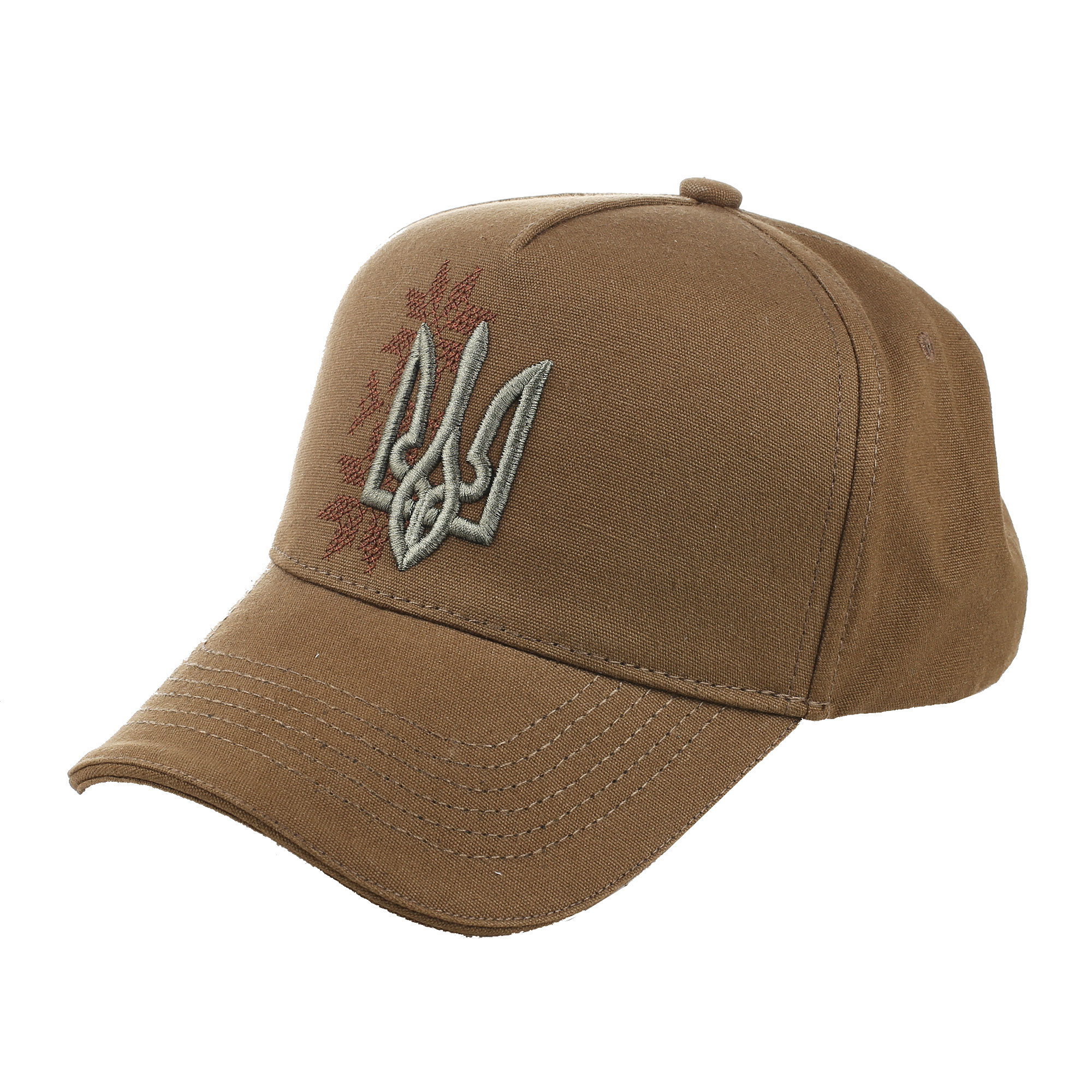 Кепка класичної форми виконана із щільної тканини, прикрашена машинною вишивкою.