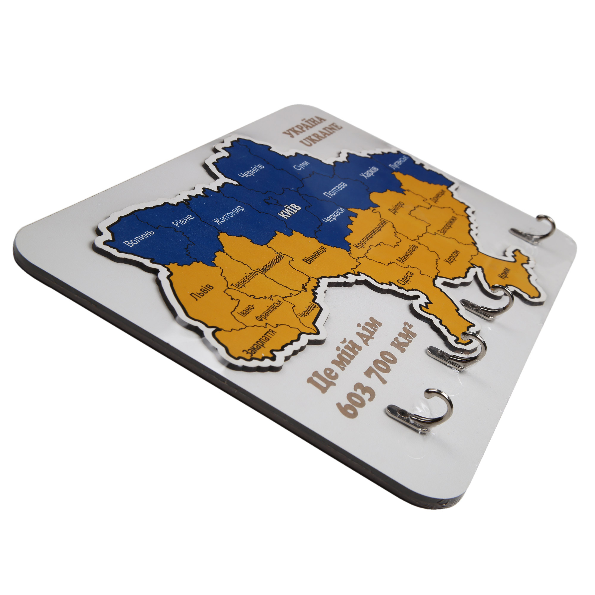 Дерев`яна ключниця з об‘ємною мапою “Україна”.