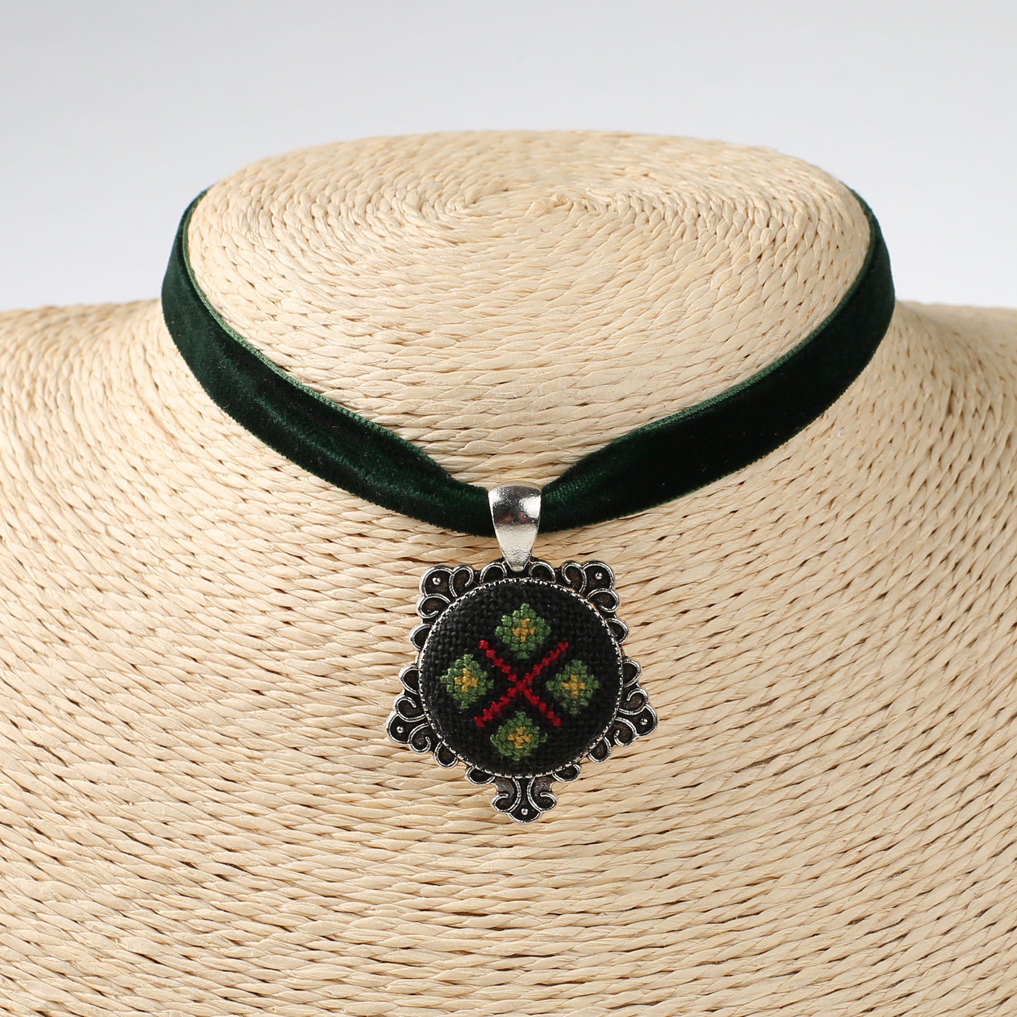 Розмір кабошону від 2 до 3 см, оксамитова стрічка. Ручна робота.