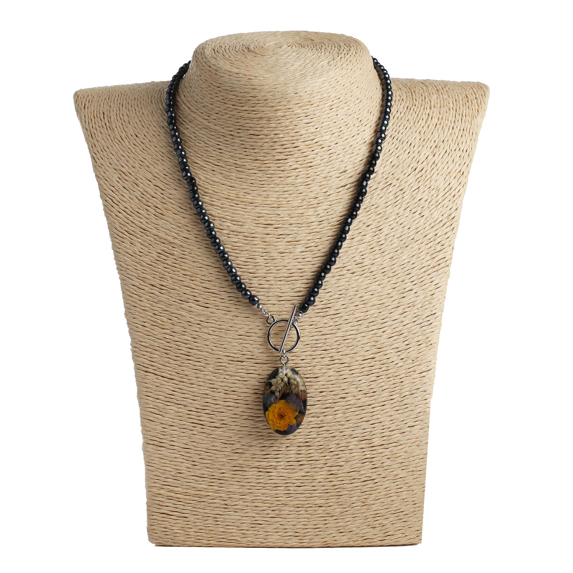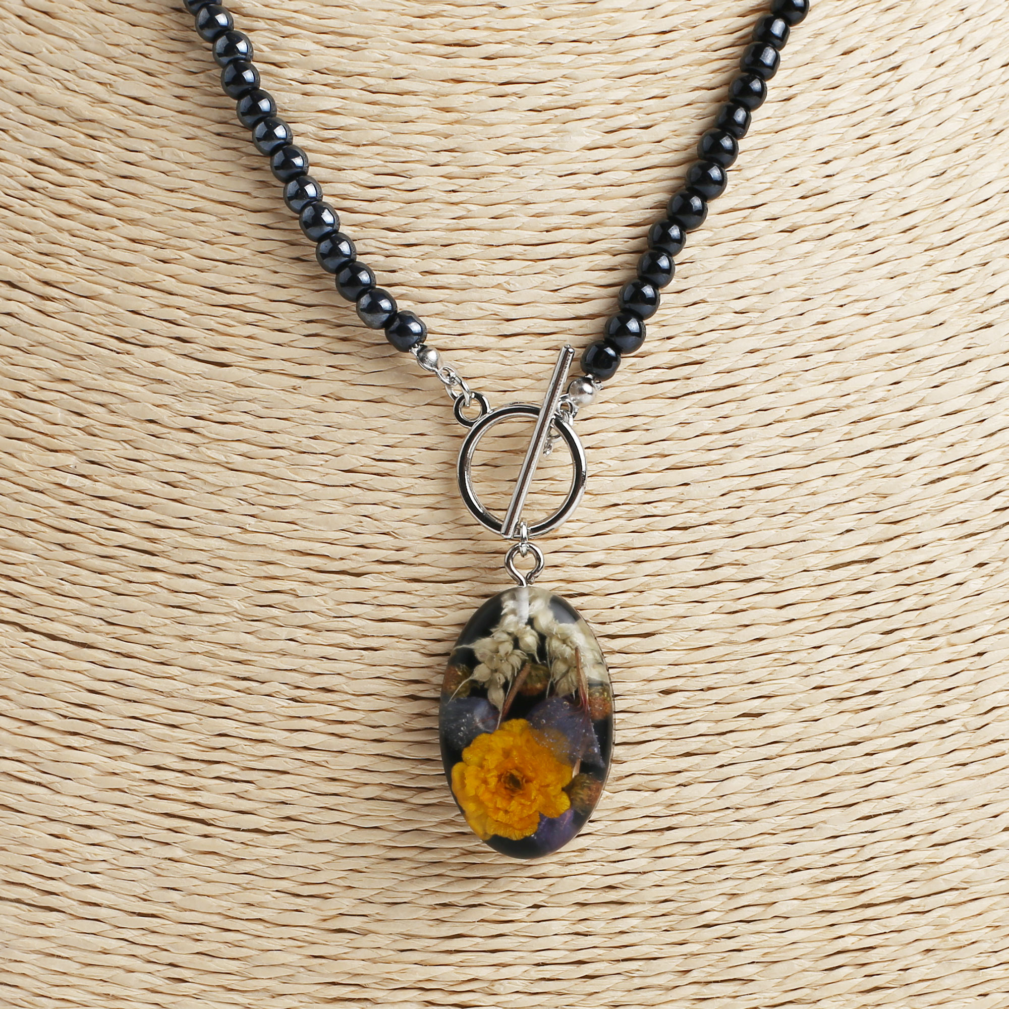 Розмір 3х2см, довжина 40см. Матеріал –епоксидна смола, сухоцвіт,бісер.