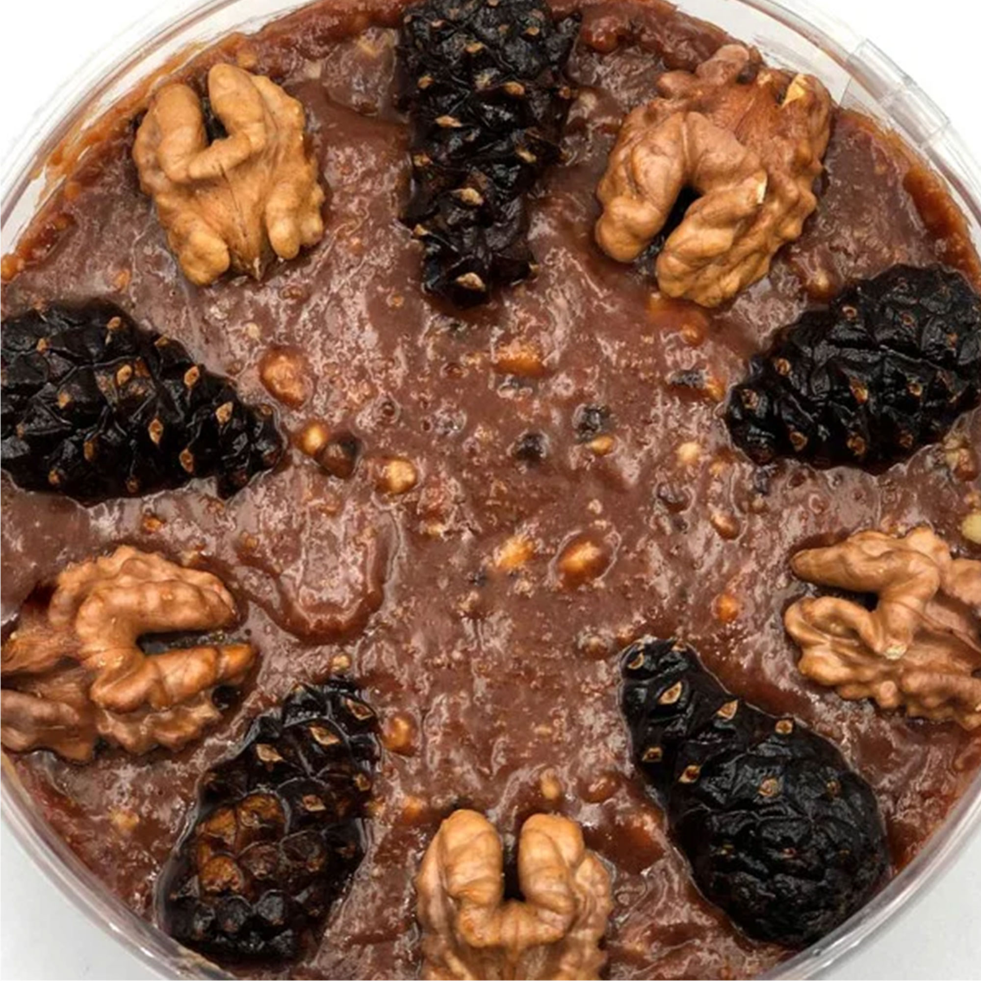 Чудове поєднання мелених горіхів, цукатів з соснової шишки, молочного шоколаду -це натуральний карпатський смаколик до травяного чаю.