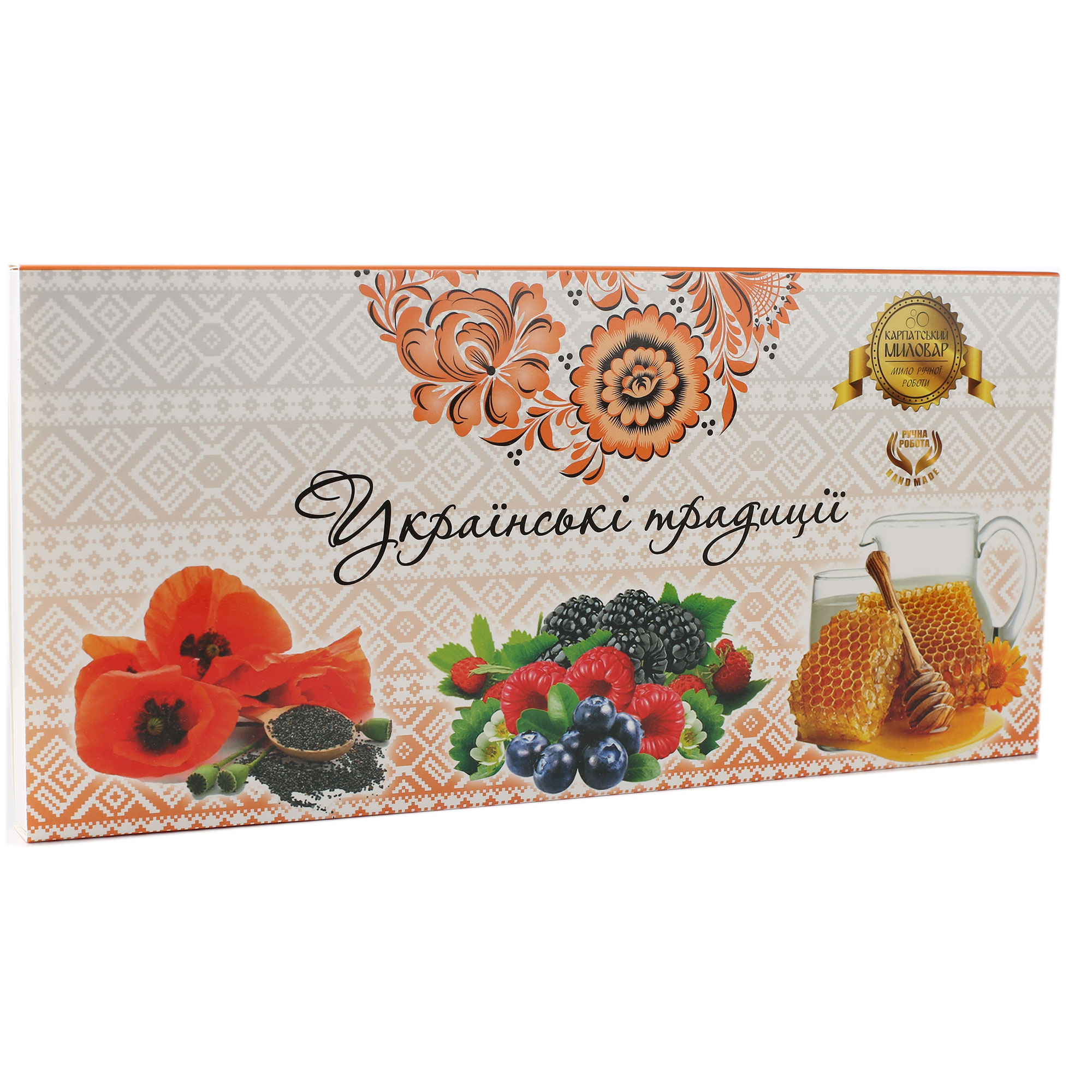Мило ручної роботи”Українські традиції”.Набір складається з 3-ох мил:”Медове з молоком”,”Лісова ягода”,”Маковий скраб”.
