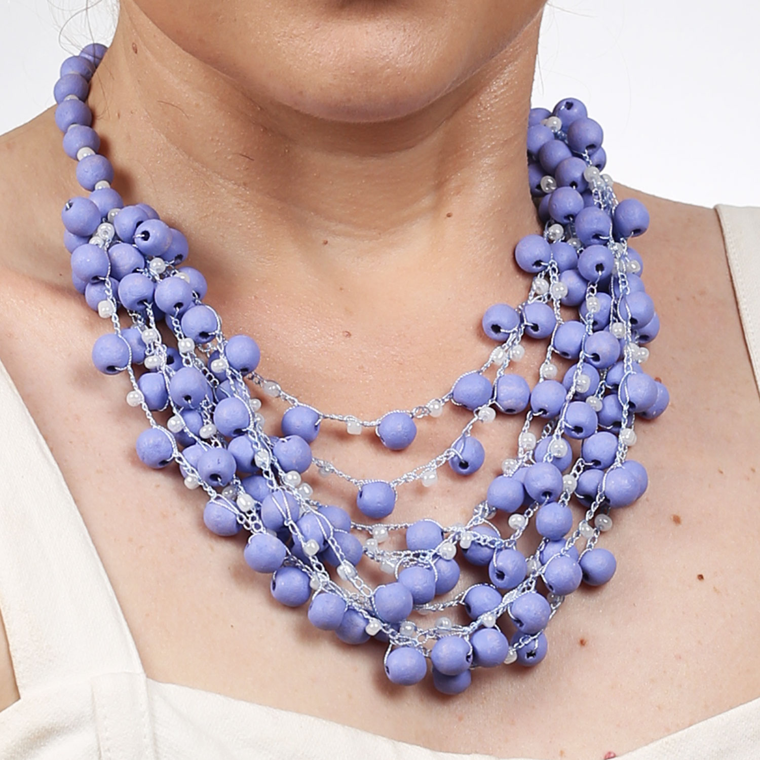 -Матеріал – дерев’яні намистинки, бісер , що нанизані на шовкову нитку. Колір бузковий.