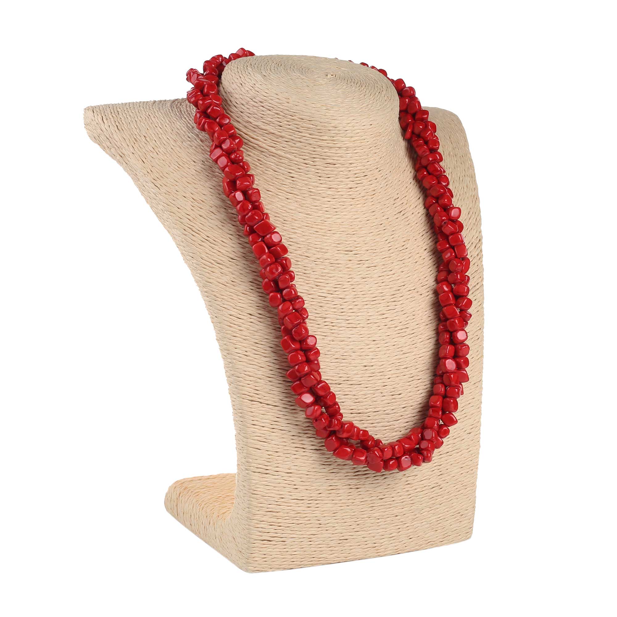 Кольє з натурального каміння корал на металевій защіпці 25 см