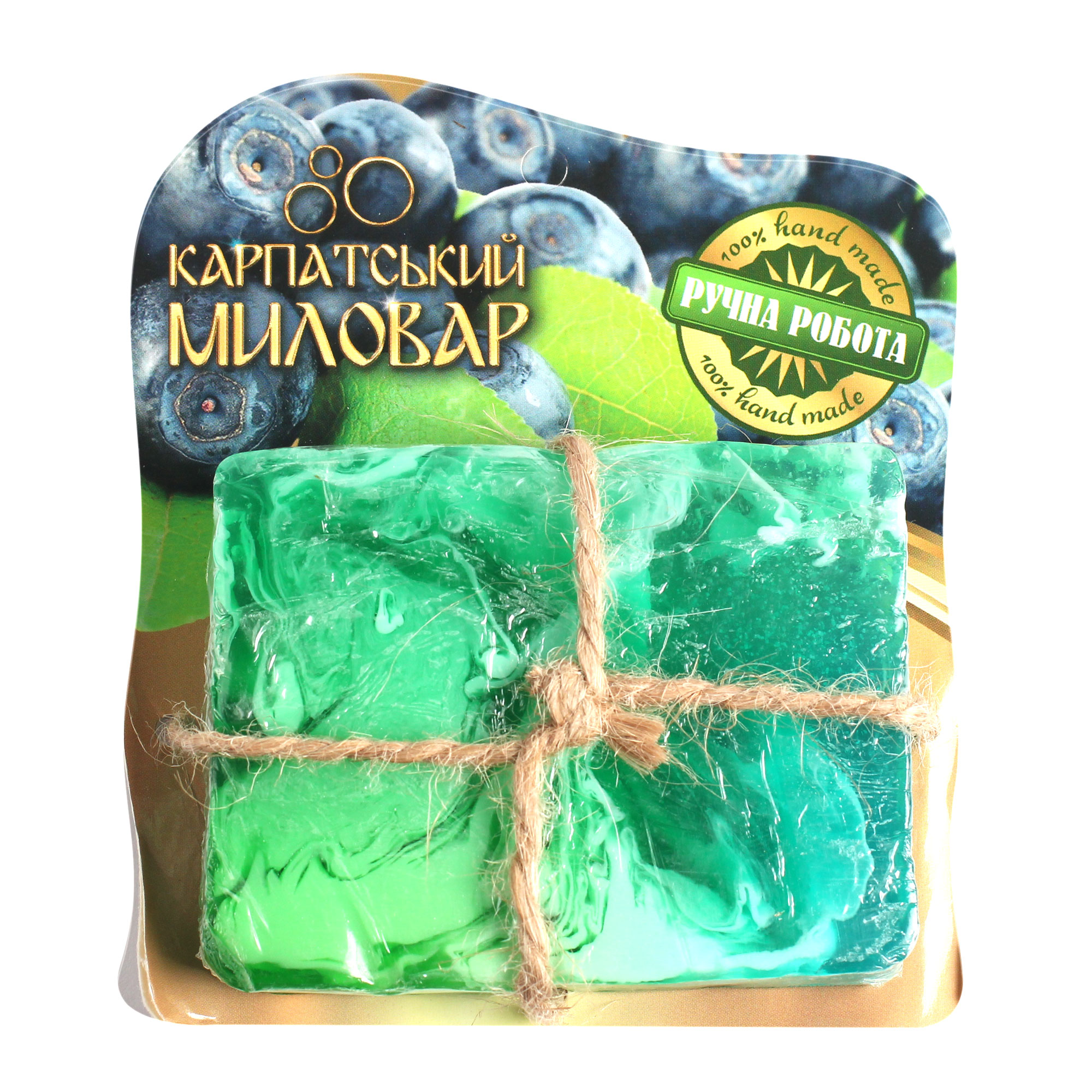 Мило ручної роботи з приємним ароматом карпатської чорницi. Природнi компоненти у складi спрямованi на м,яке очищення втомленої i чутливої шкiри. Мило дезинфiкує, пiдвищує еластичнiсть i дає вiдчуття свiжостi.