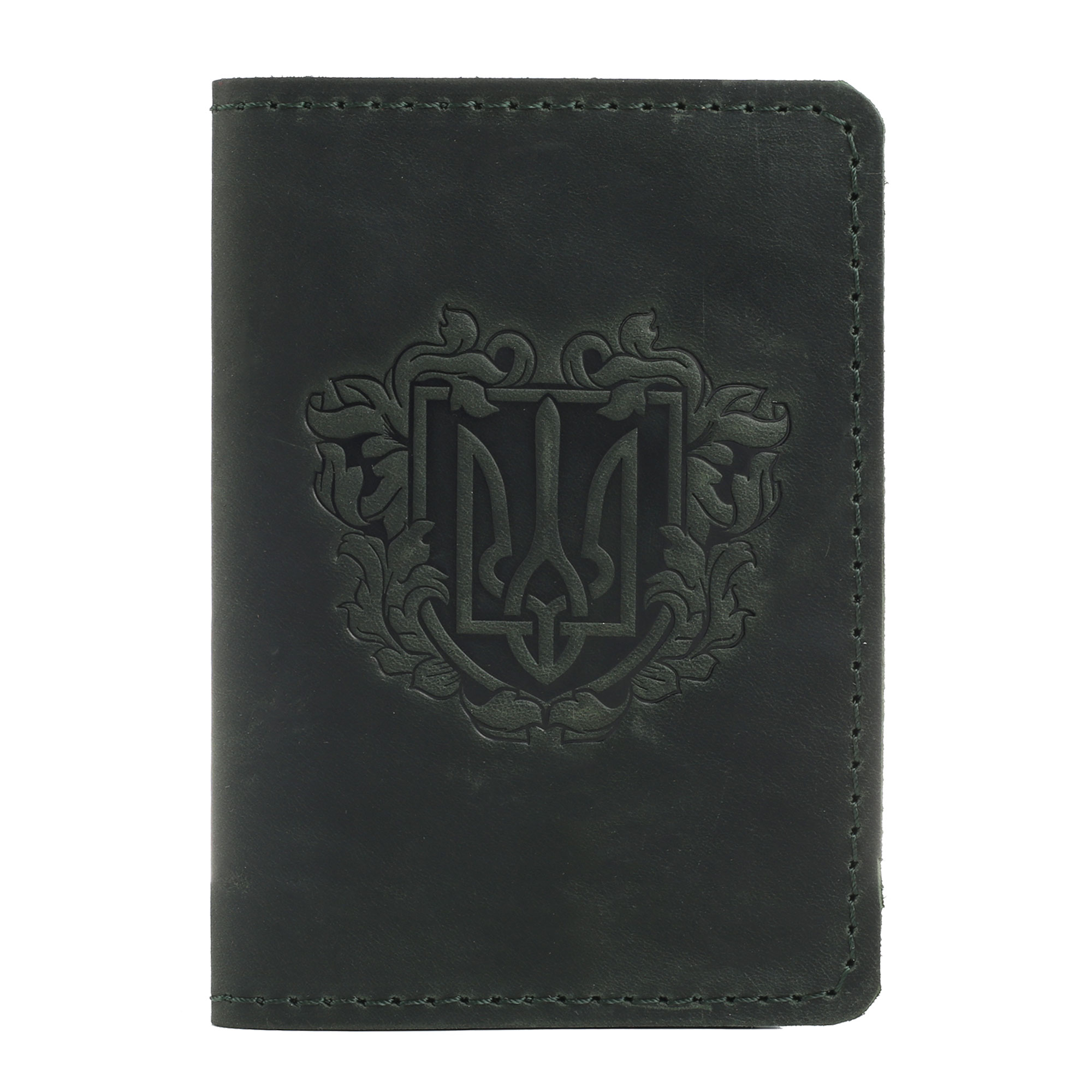 Обкладинка на паспорт зелена “Герб – орнамент”