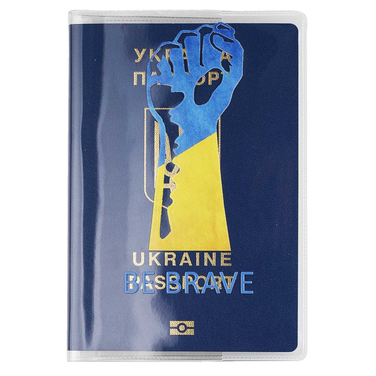 Силіконова обкладинка на паспорт, з зображенням чоловічої руки в блакитно-жовтому кольорах.
