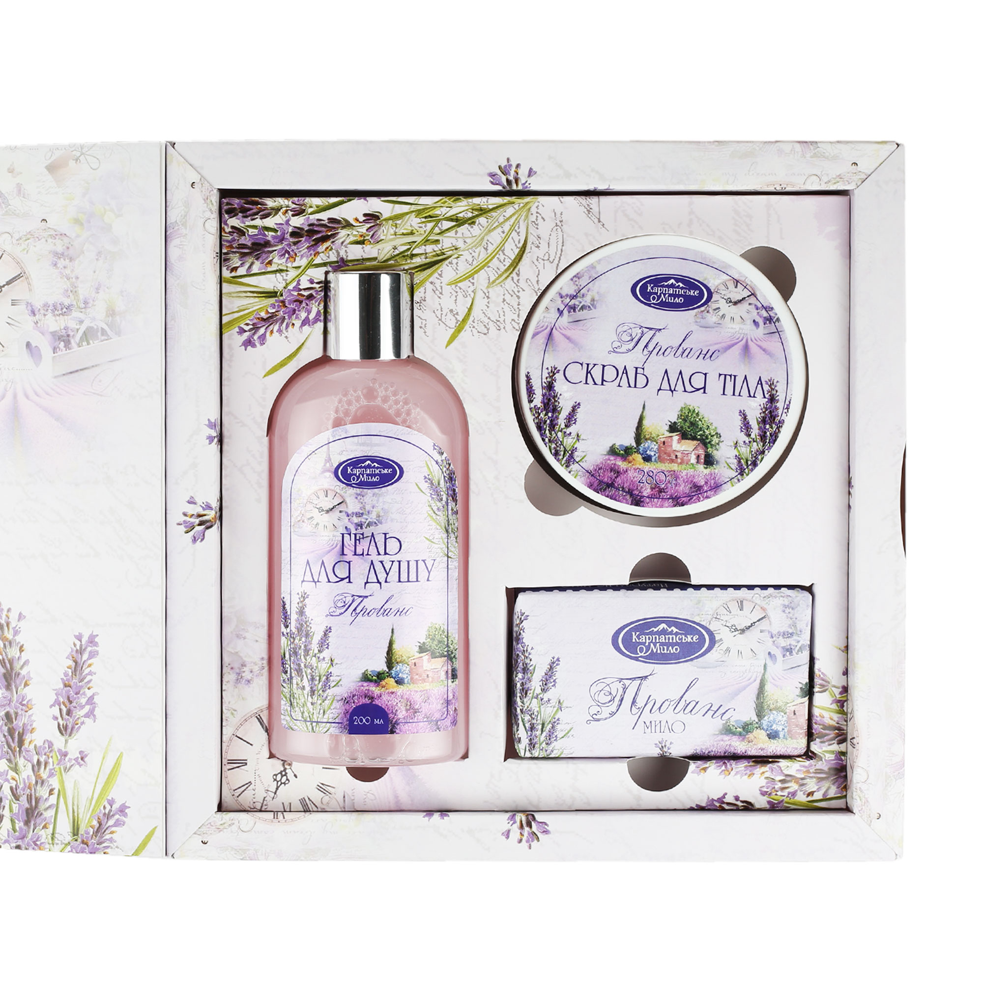 Подарунковий набір “Прованс” включає в себе: гель для душу, цукровий скраб для тіла та саме мило гармонія. На упаковці вказаний детальний склад товару, а також спосіб його застосування. Чудово підійде для тих хто хотів спробувати щось нове, але вагався чи варто замовляти.
