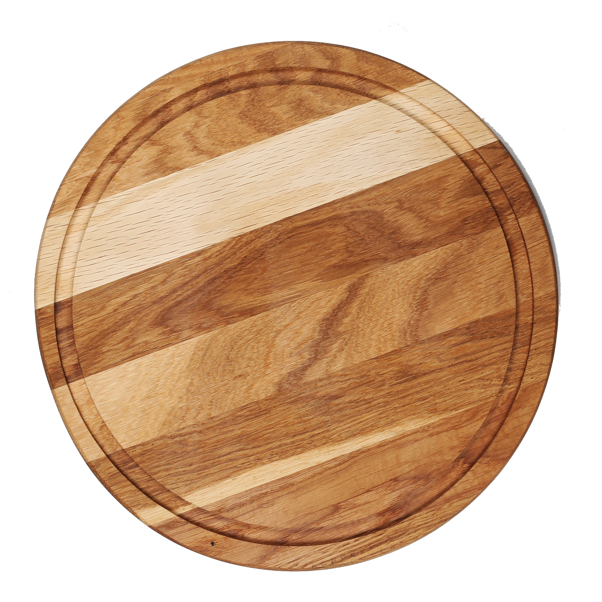 Дерев`яний двосторонній виріб. Одна сторона гладка і чудово підійде для піци, інша має 4 менших відділа в які можна покласти: фруктики, горішки і та інше