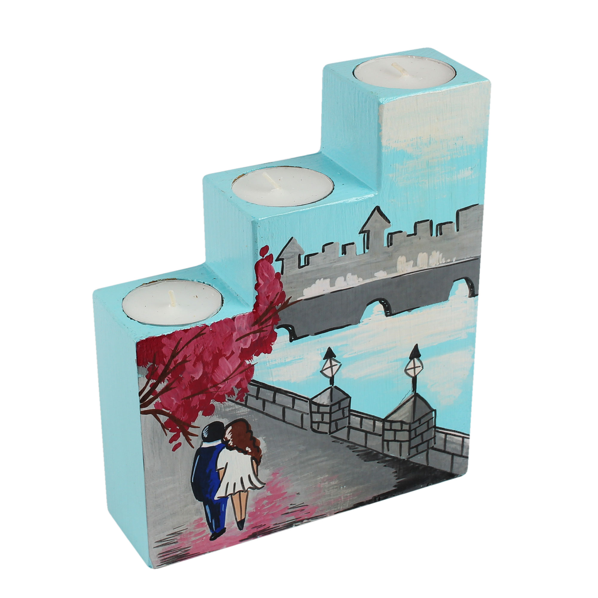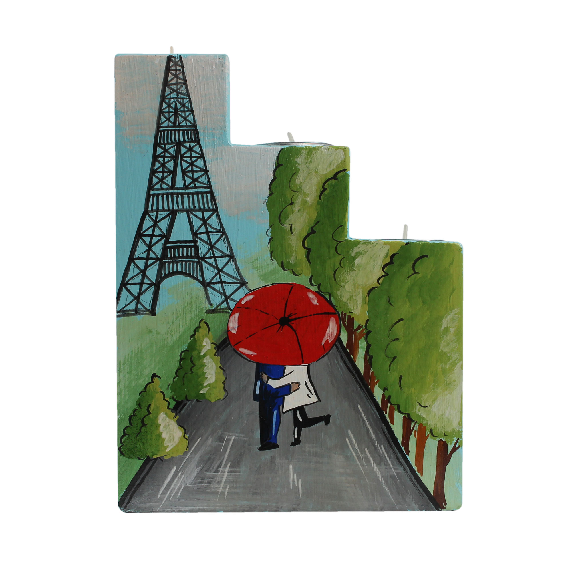 Потрійний підсвічник “Кохання в Парижі”, призначений для чайних свічок.