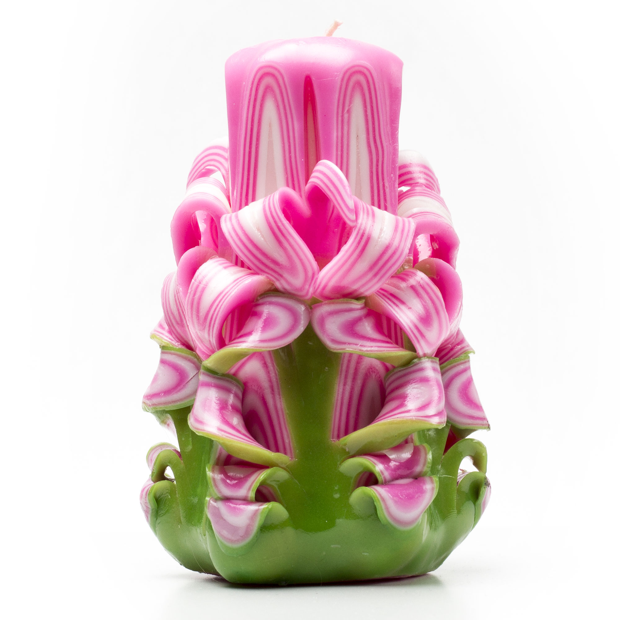 Свічка рожева ручної роботи , різьблена .