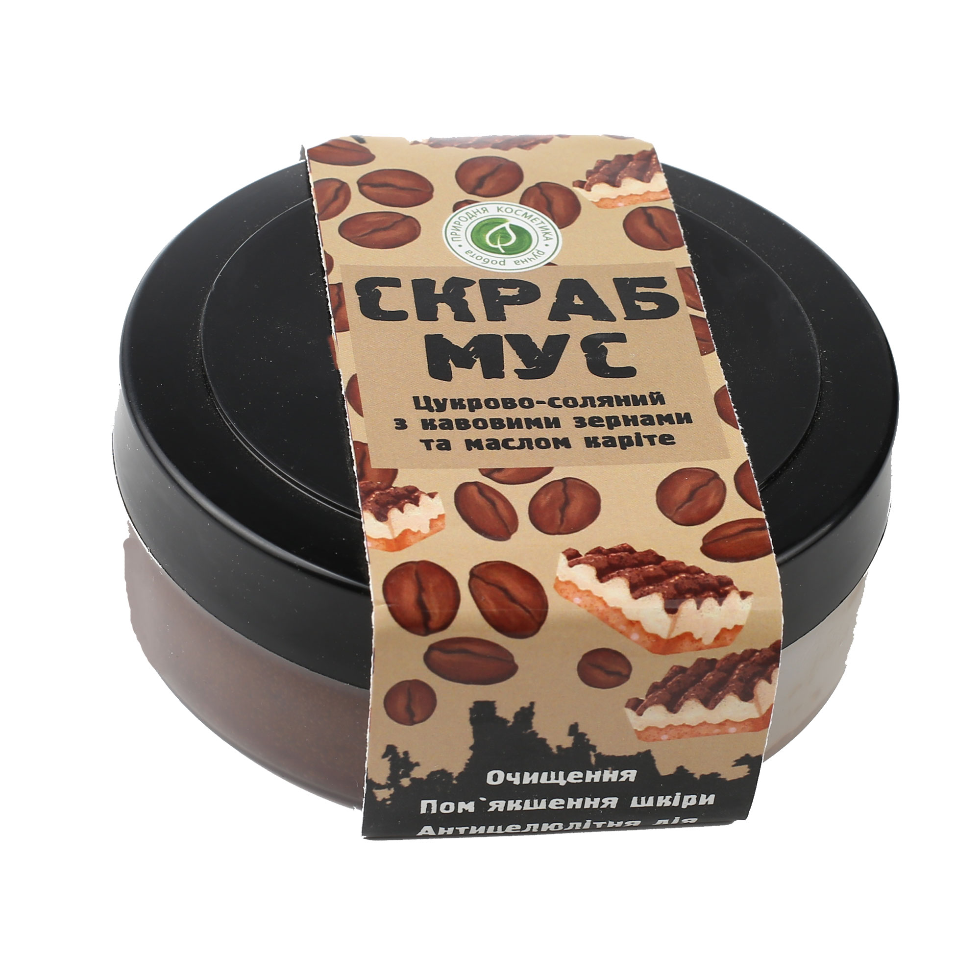 Цукрово-соляний скраб-мус дбайливо очищає, видаляючи ороговілі частинки, сприяє зменшенню целюлітних проявів, масло каріте пом’якшує,надає еластичності шкірі, запобігає процесам старіння.