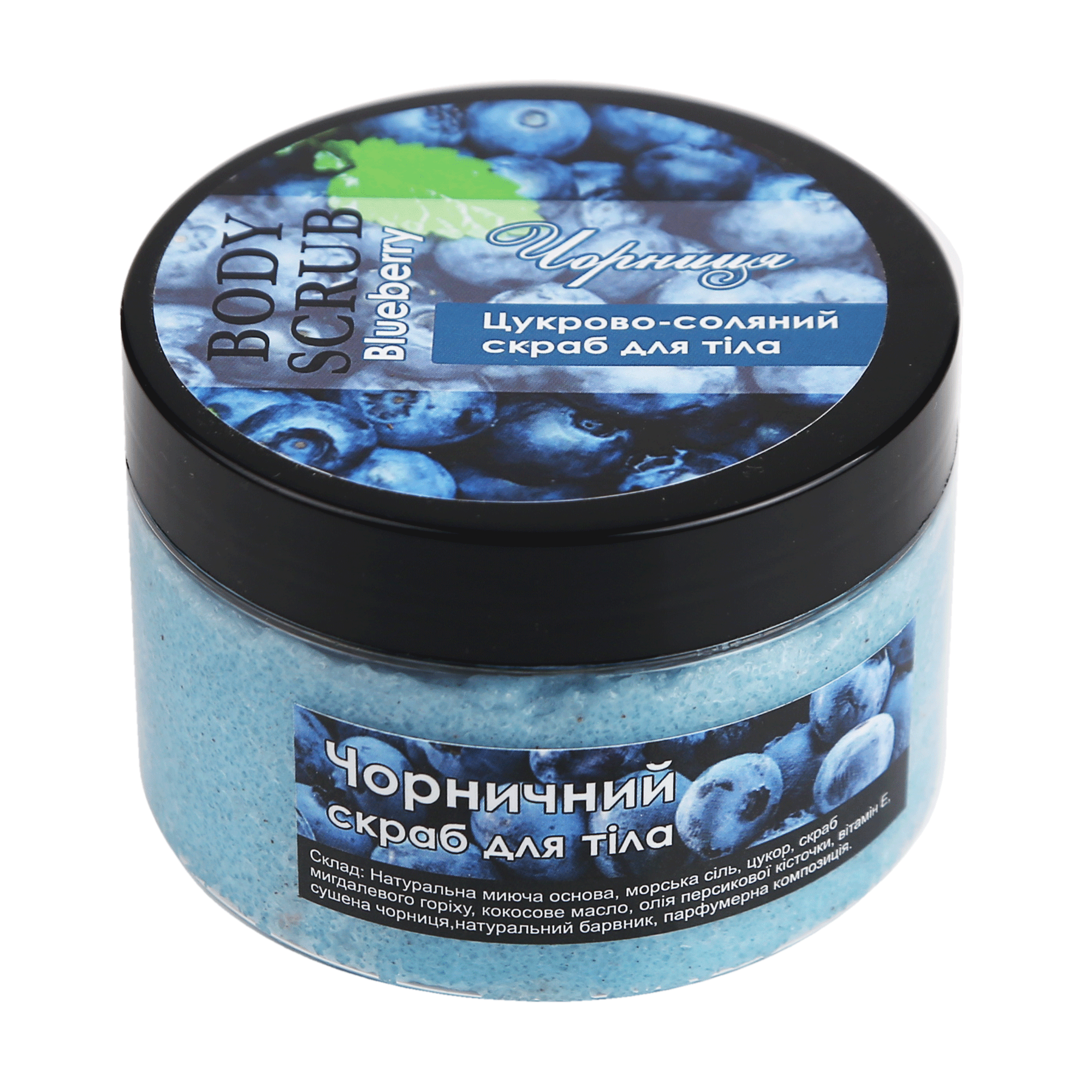 Склад: натуральна миюча основа, морська сіль, цукор, скраб мигдалевого горіху, кокосове масло, олія мигдалевої кісточки, Вітамін Е, натуральний барвник, ефірна олія лаванди.