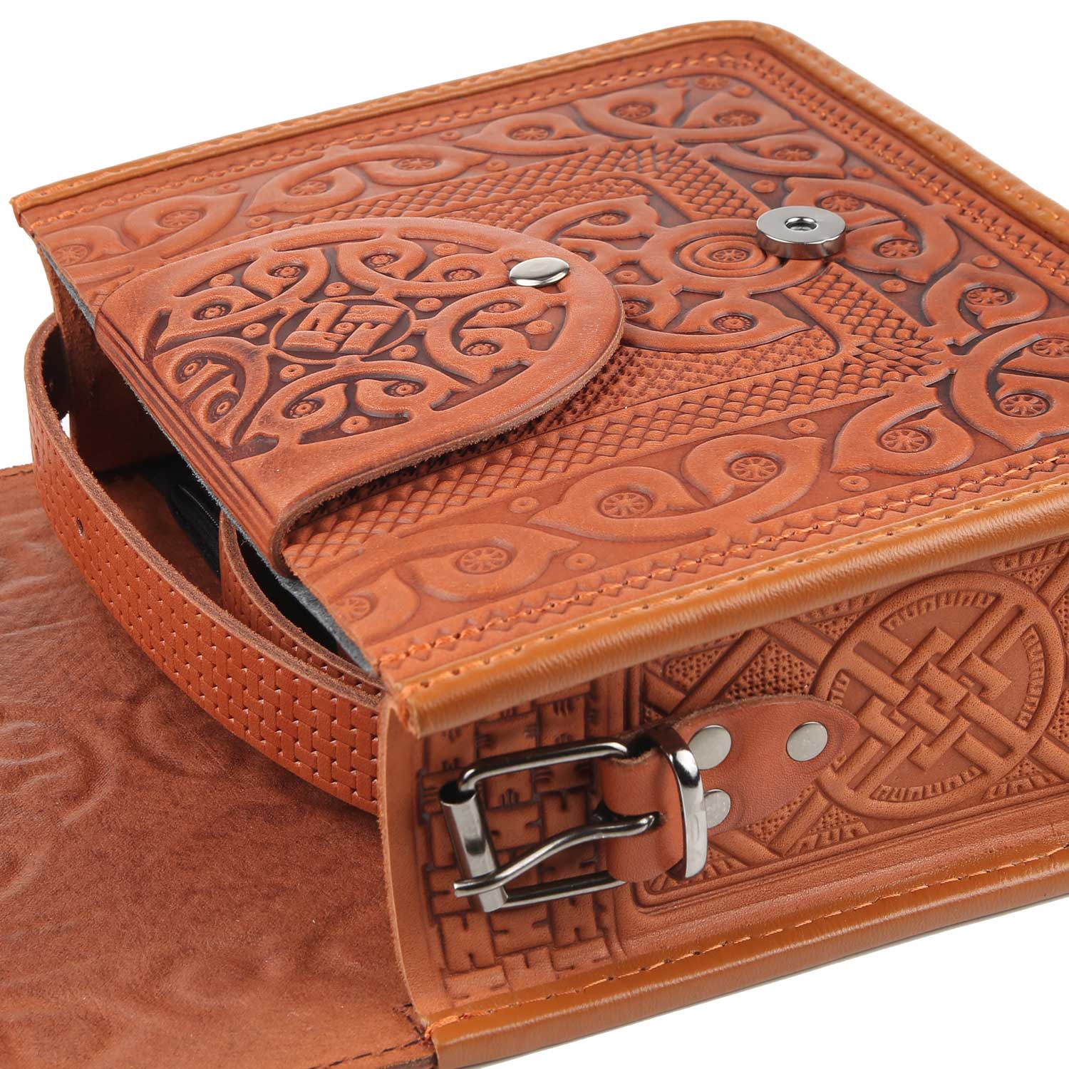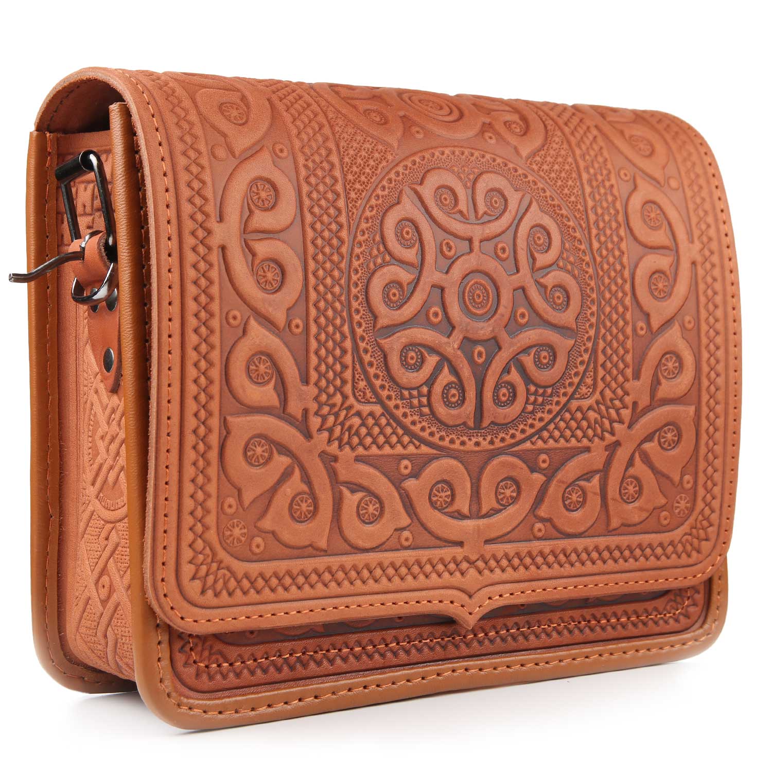 Шкіряна сумка ручної роботи , з тисненням .