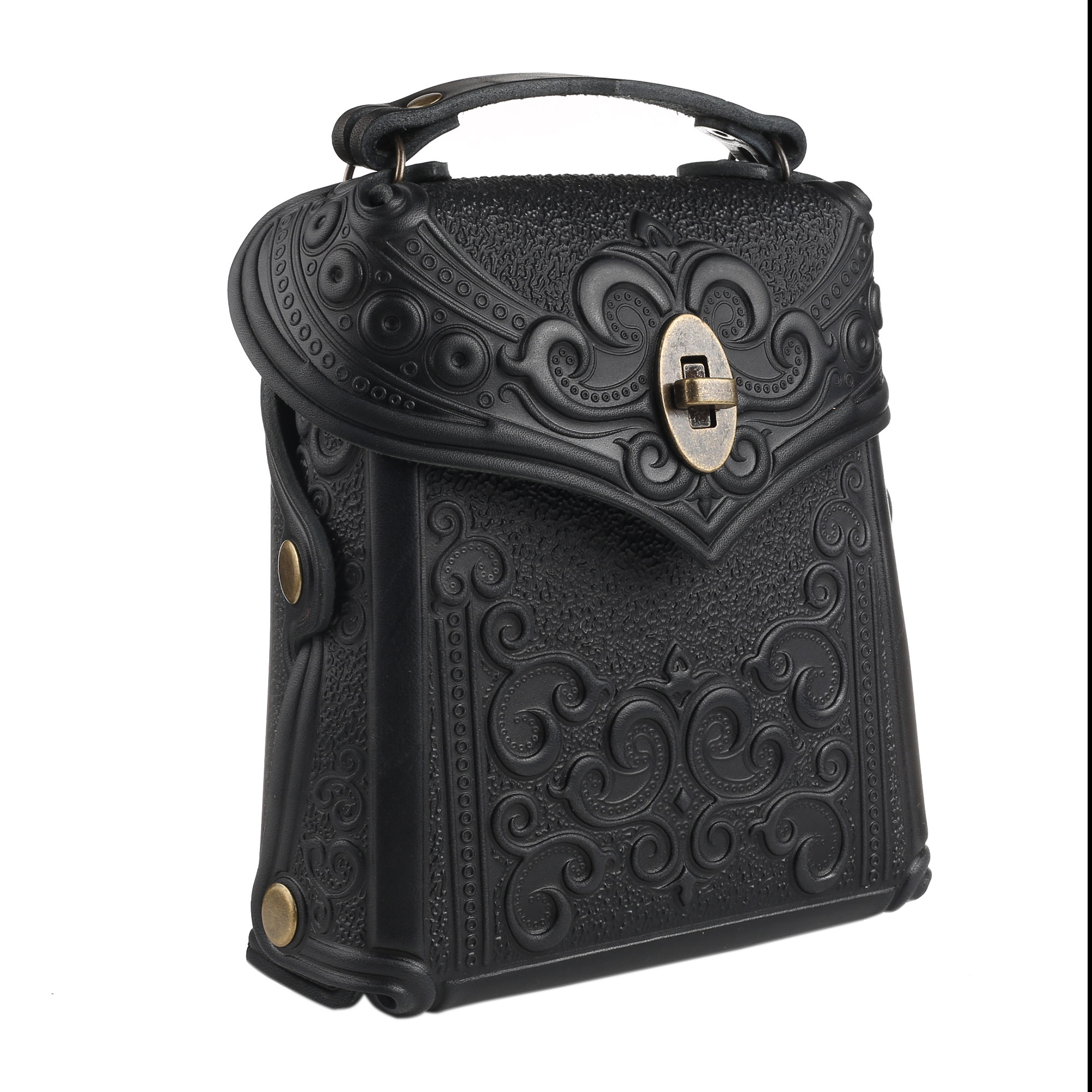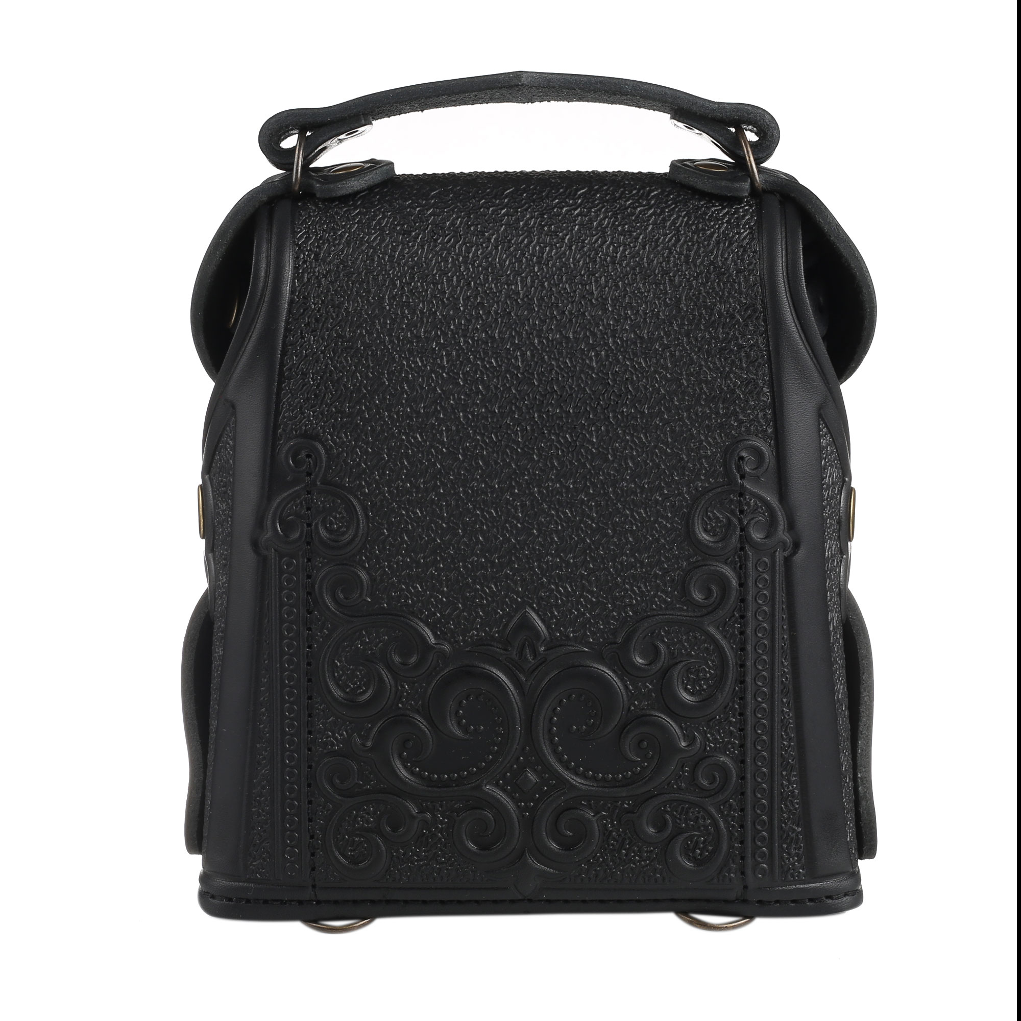 Сумка рюкзак шкіряна чорна “Тиснення”