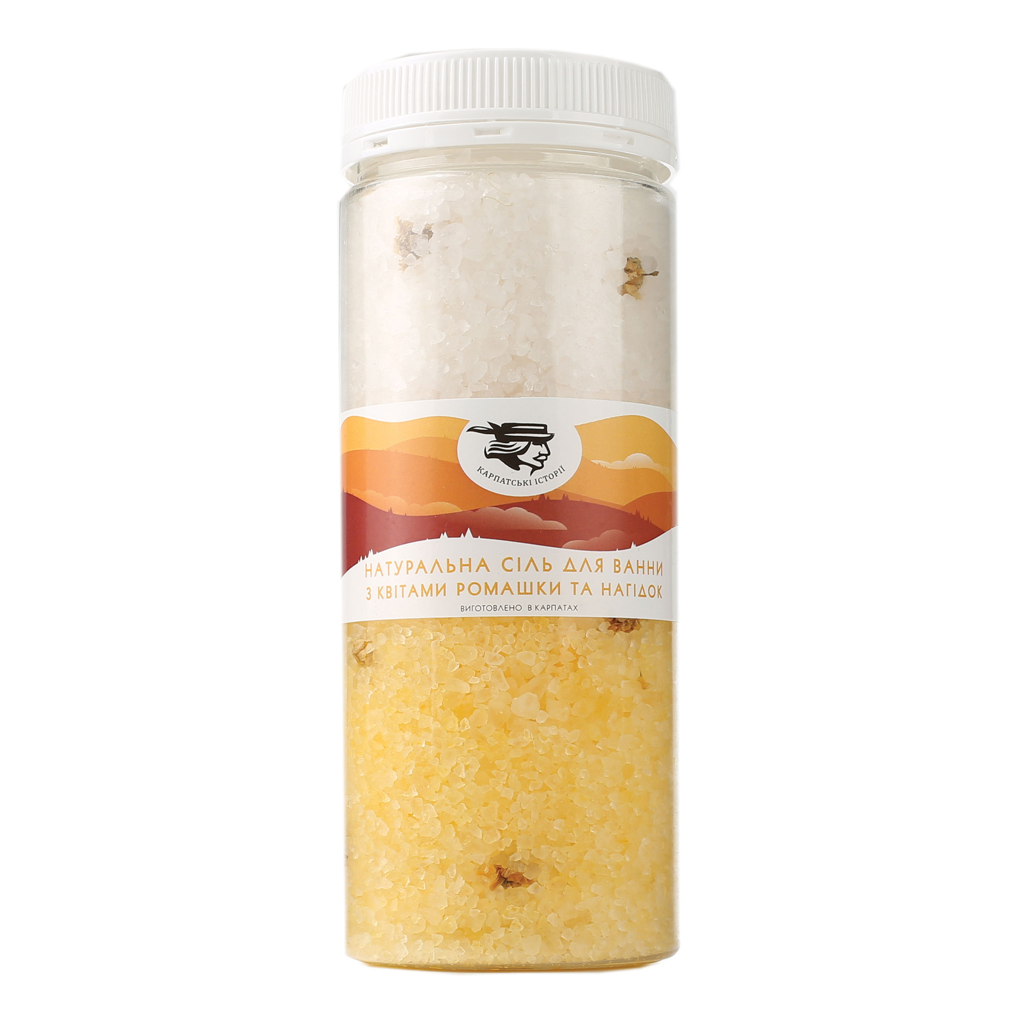 Склад: морська мінеральна сіль та з озера Солотвино, екстракт ромашки та нагідок, суміш ефірних масел, квітки ромашки та нагідок.