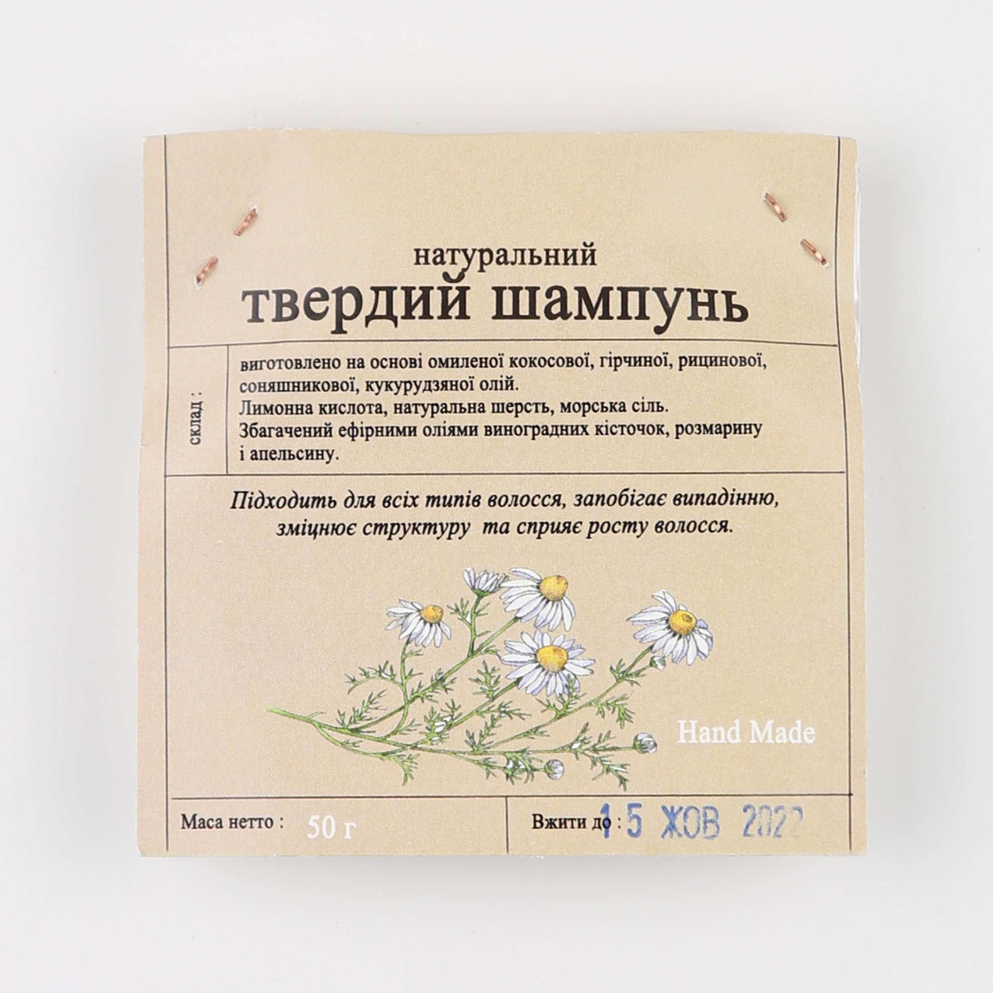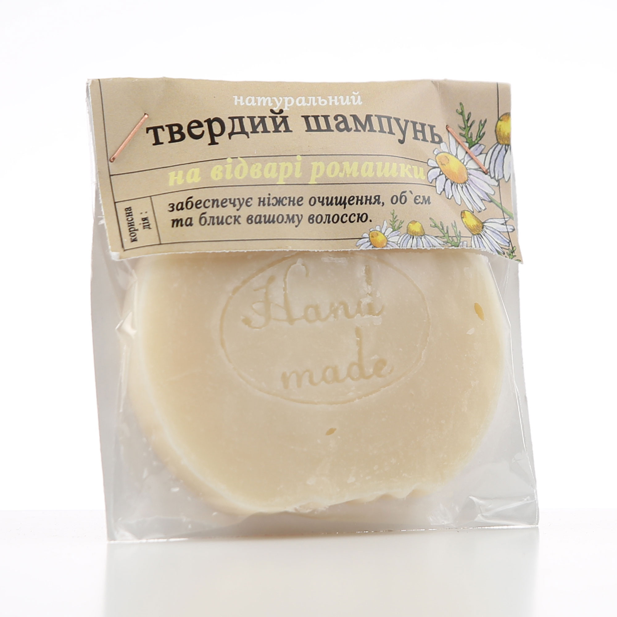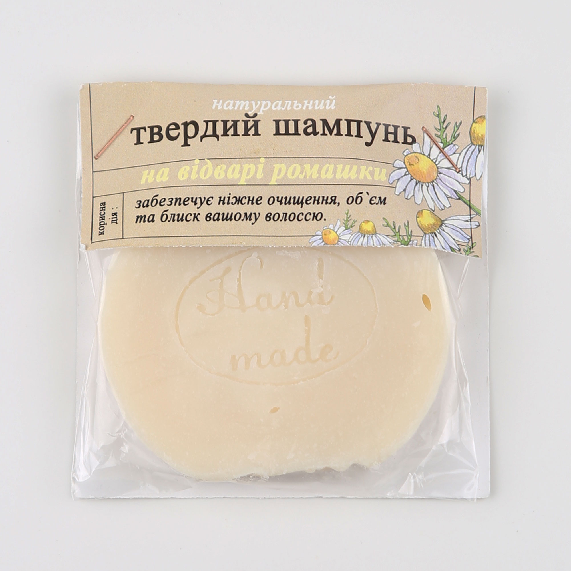 Твердий шампунь на відварі ромашки забезпечує ніжне очищення, об’єм та блиск Вашому волоссю.