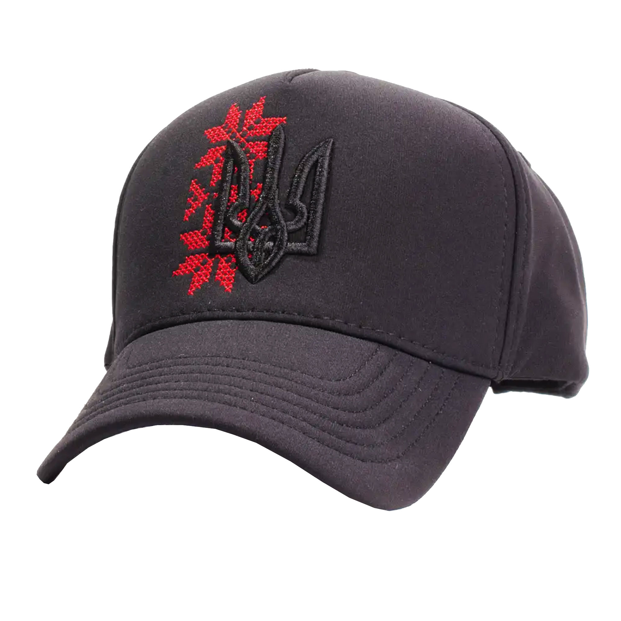 Утеплена кепка чорно-червона з тризубом