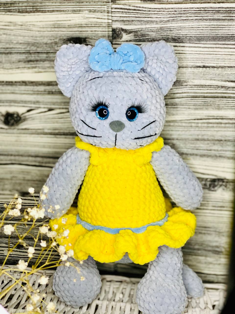 Іграшка “Киця” ручної в’язки з гіпоалергенної пряжі, м’ягка та ніжна на дотик.