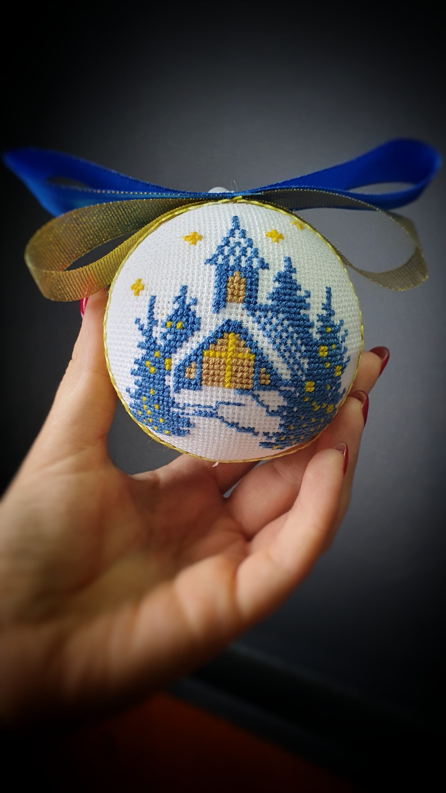 Новорічна вишита іграшки – кулька, м’ягка та приємна на дотик