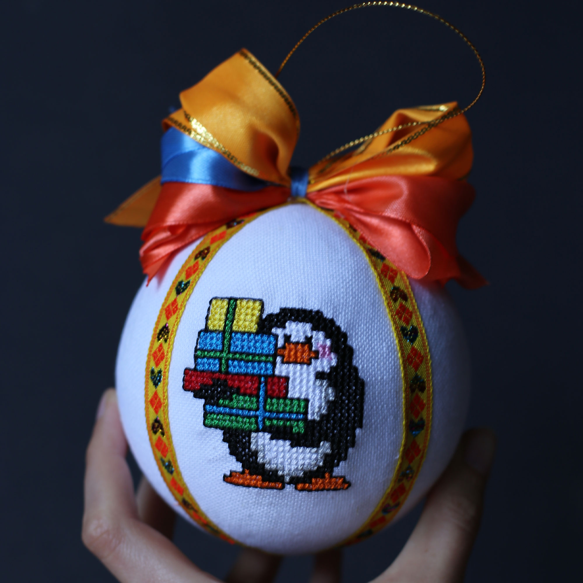 Новорічна вишита іграшки – кулька, м’ягка та приємна на дотик