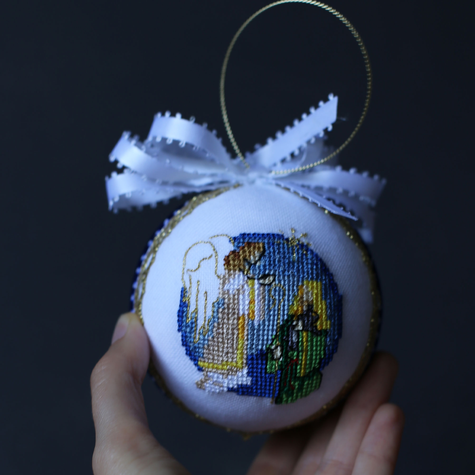 Новорічна вишита іграшка – кулька, м’яка та приємна на дотик