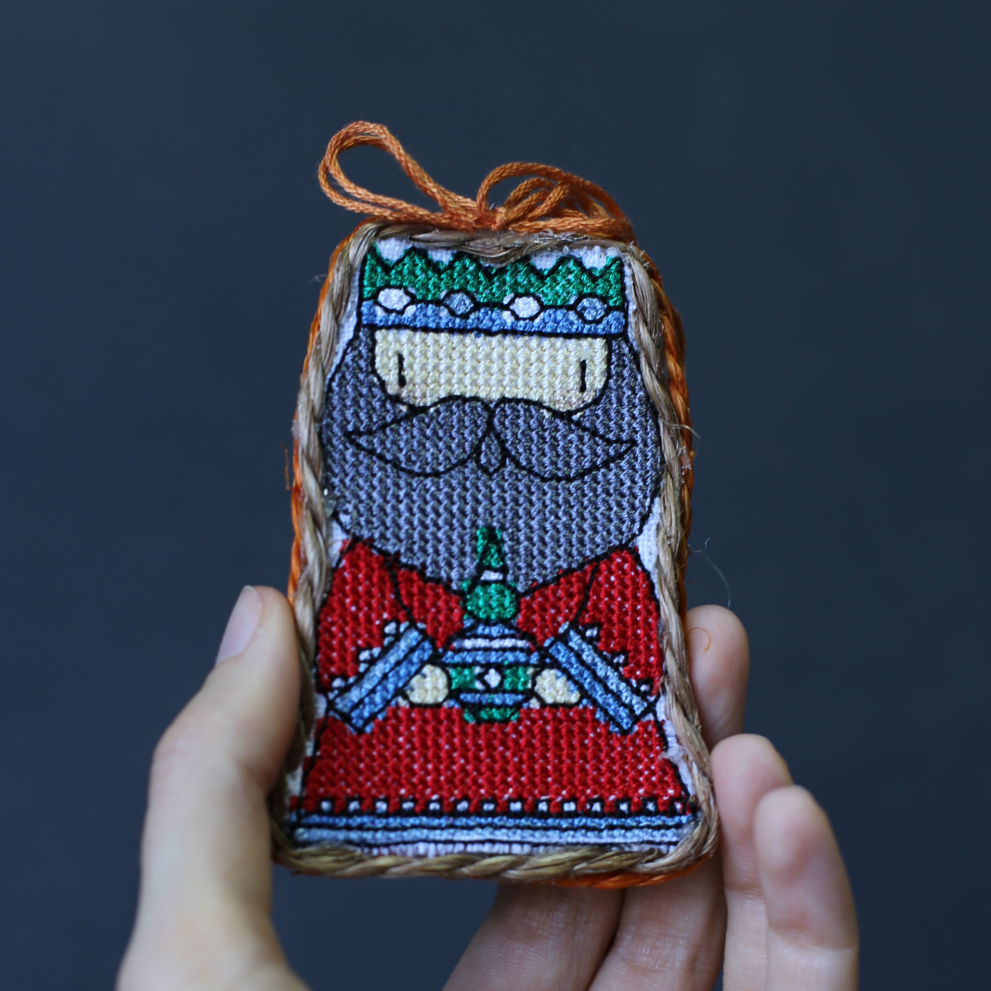 Новорічна вишита іграшки – кулька, м’ягка та приємна на дотик